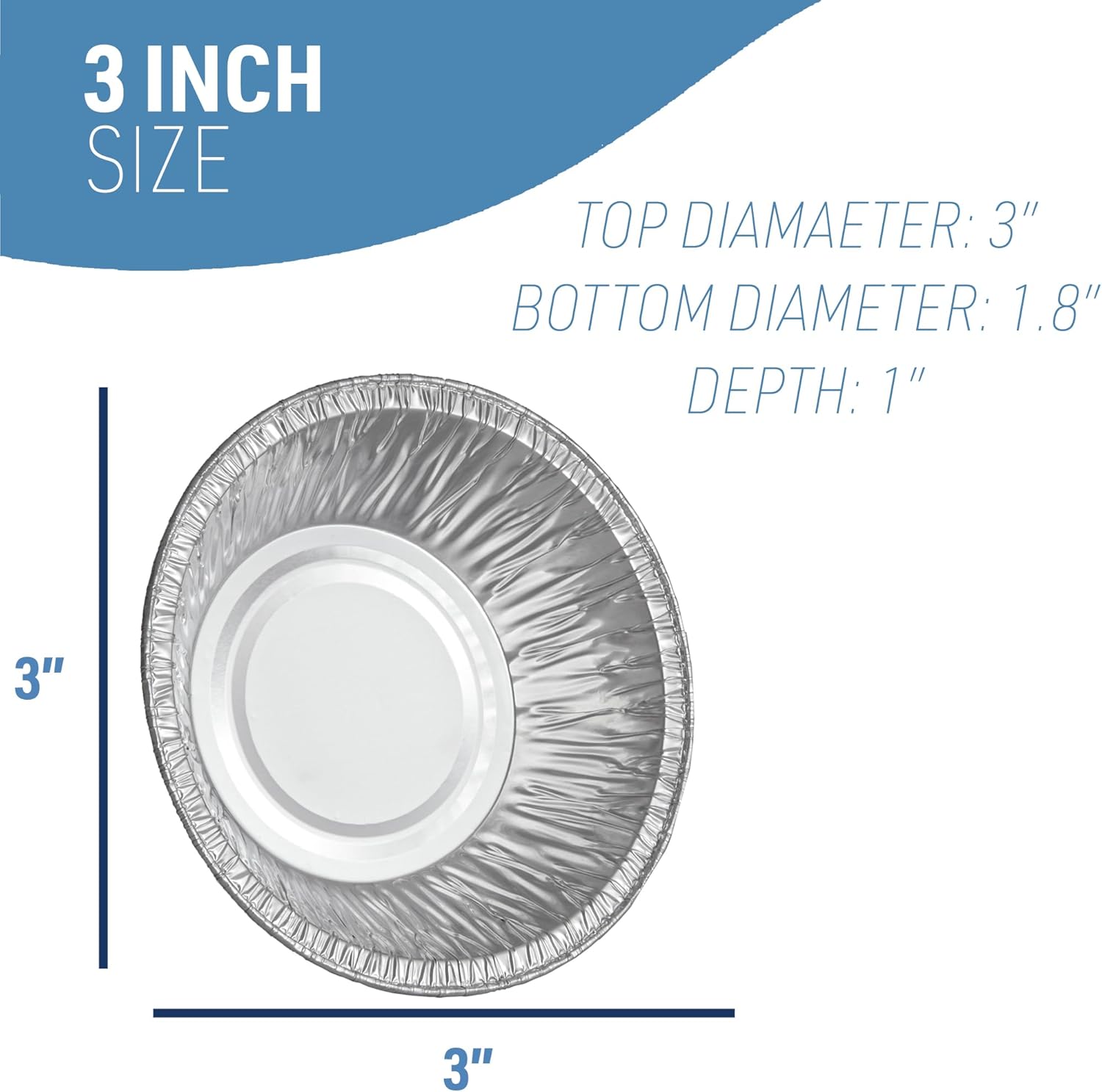 DOBI (100-pack 3″ Mini Pie Pans – Small Disposable Aluminum Foil Pie tins, Mini-Size Pie Plates. Small Foil Plates Perfect for Holiday Baking (Width: 3″, Depth: 1″)