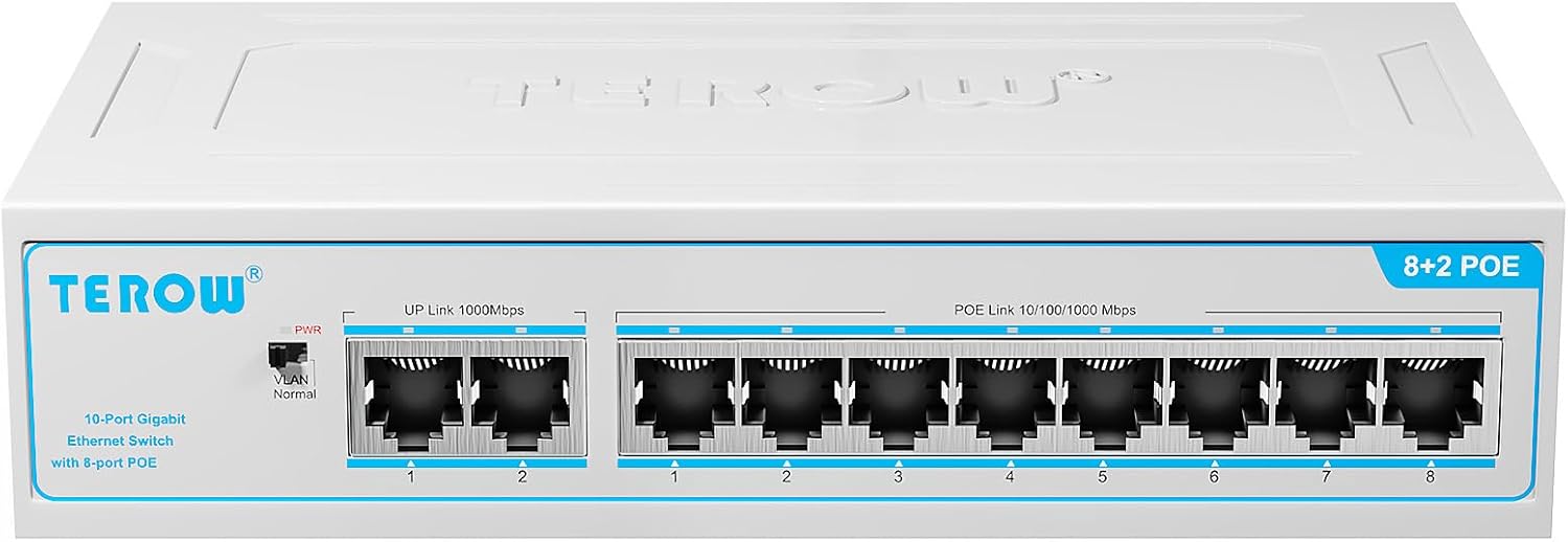 Ultra-Fast Gigabit Ethernet Switch: Enhance your internet speed with Terow’s Gigabit PoE Switch, equipped with 8 Gigabit RJ45 Ports and 2 Uplink Ports. Experience a seamless connection with speeds up to 1,000Mbps