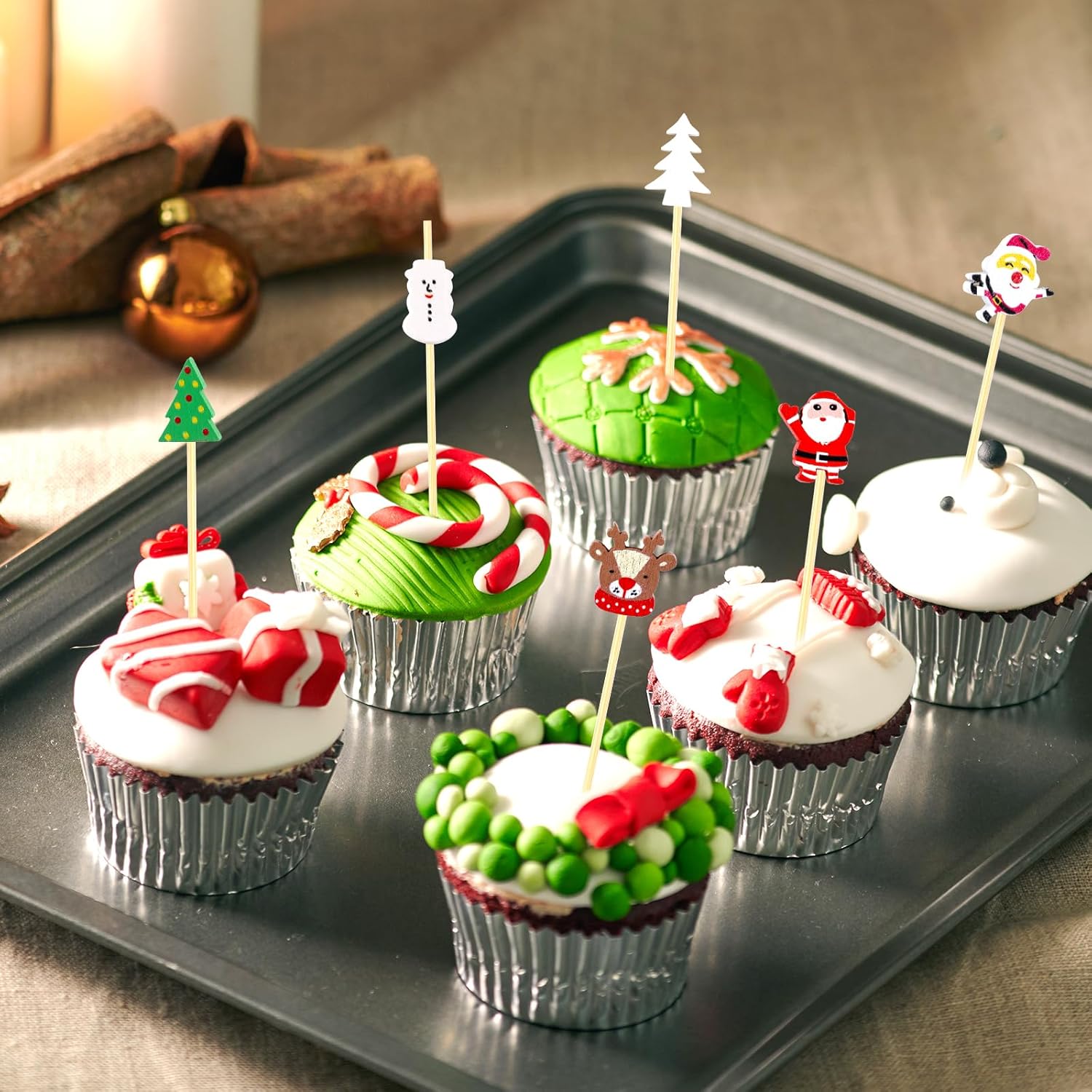 Packing List: You will get 100 pieces of Christmas cocktail picks in the package, enough quantity to satisfy your decoration needs. Use them to embellish your cocktails and food, bringing a festive flair to your holiday celebrations or gatherings.