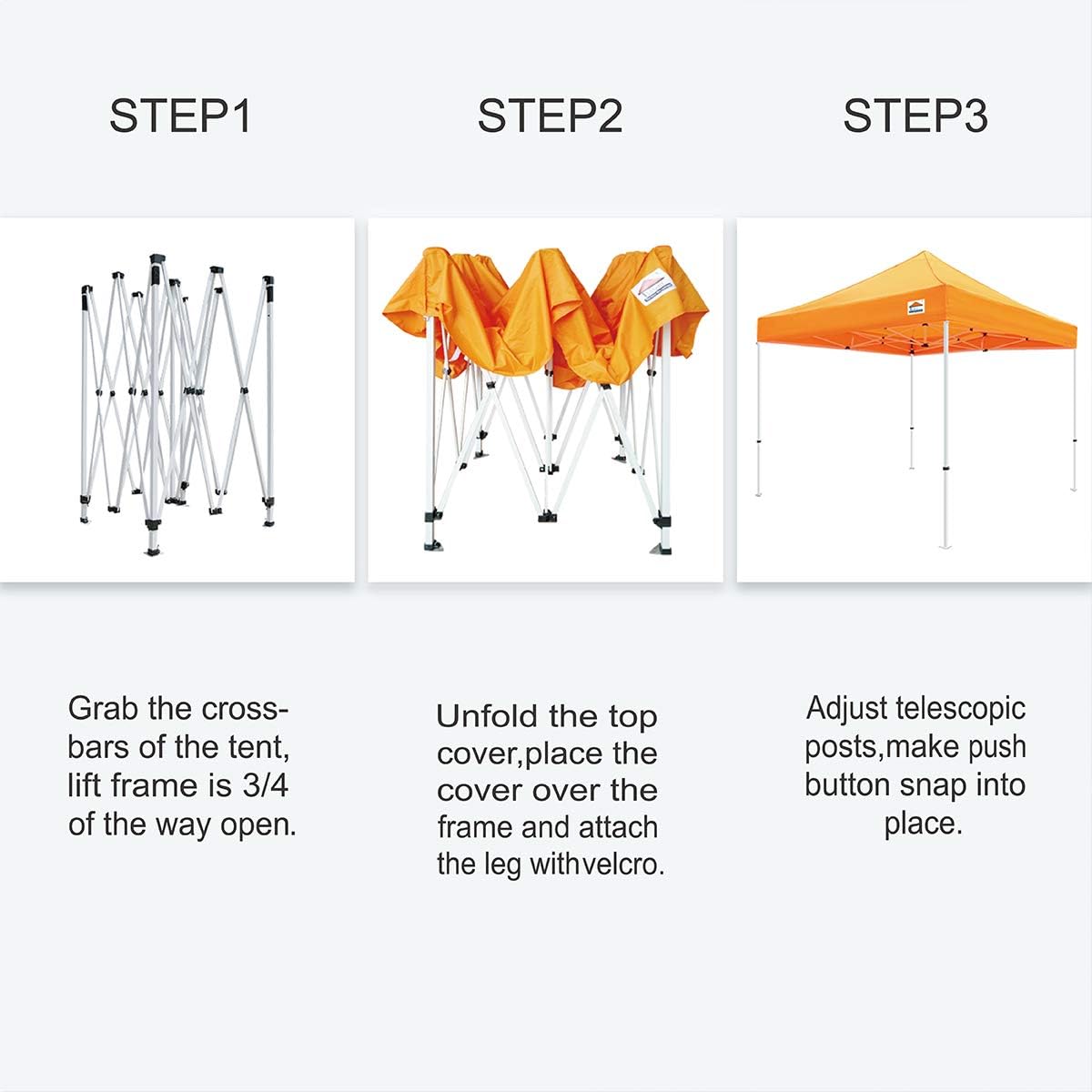 Straight leg design popup canopy, heights adjustable from 10.7 ft, 10.9 ft, 11.1 ft, easy to set up, suitable for 4-6 people, Steel D rings on each corner