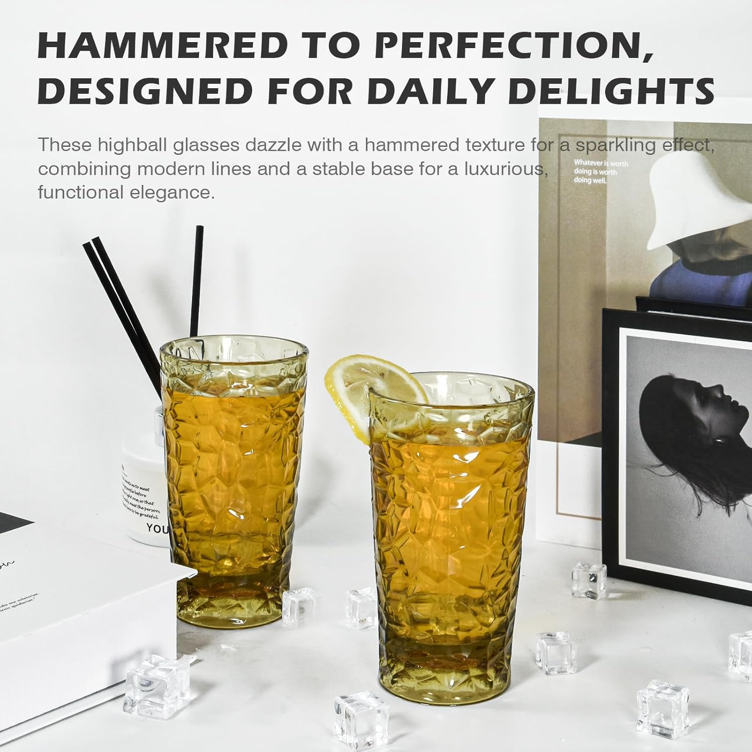 Stylish and Modern: The glasses feature a trendy honeycomb design with a glass-textured appearance, adding a touch of sophistication and modernity to your drinkware collection. With multiple color options available, you can choose the perfect set to complement your personal style and home decor.