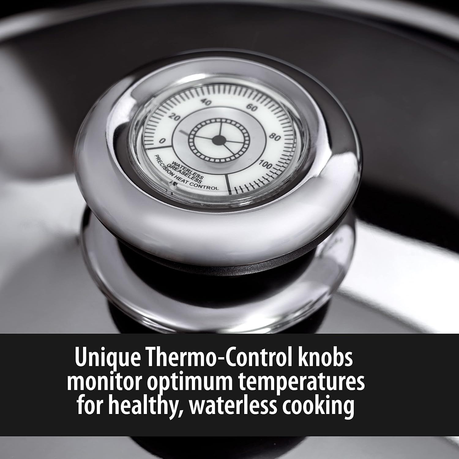 Prepare Juicy & Healthy Dishes – The glass lids are fitted with state-of-the-art thermo-control knobs. With this waterless cookware, you can let the food cook in its natural juices and fats.