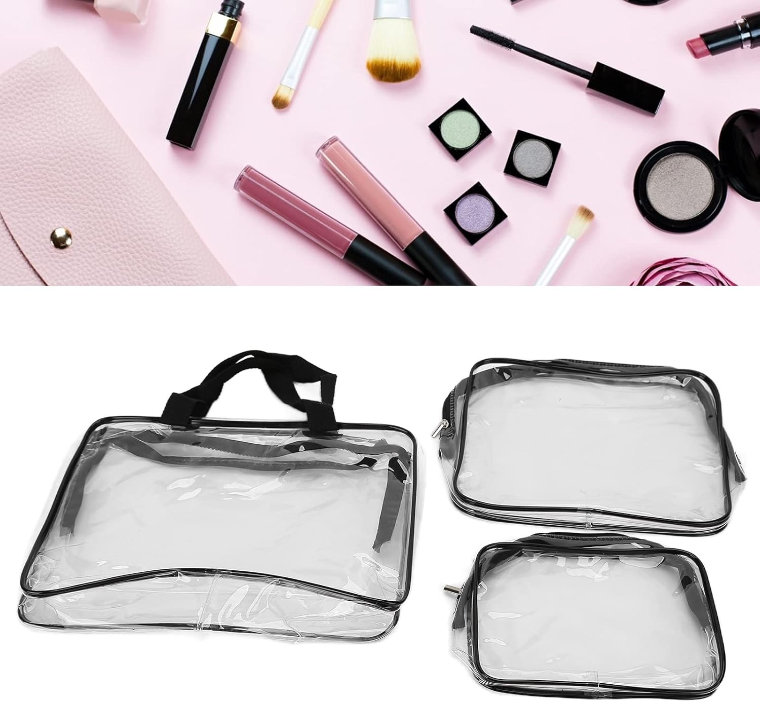 3Pcs Clear Makeup Bag, Portable Cute Cosmetic Bag, Wash Bag PVCTransparent Cosmetic Bag Environmental Protection Travel Storage Bag