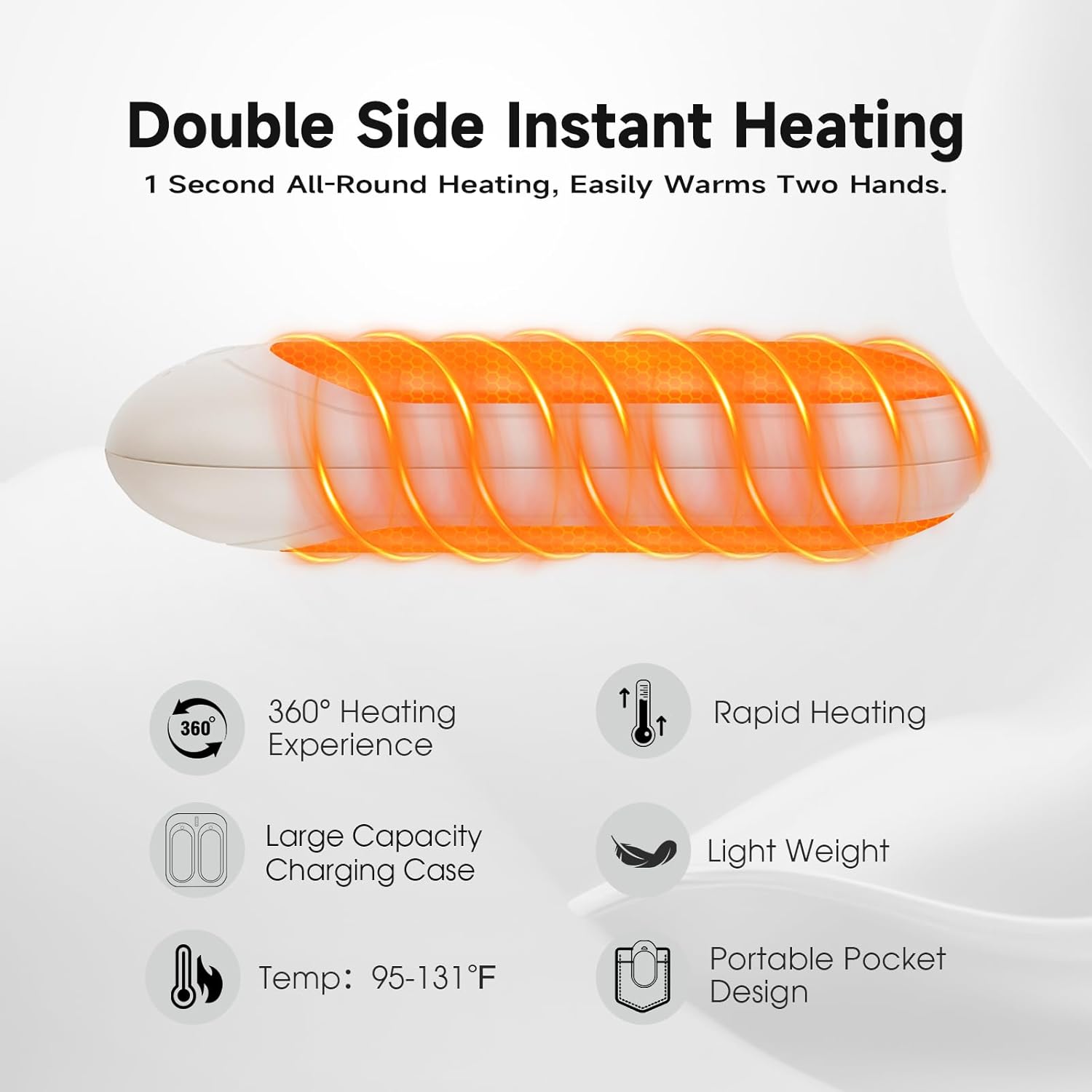 Dual-Sided Heating & Ergonomic Design – Each of our hand warmers features dual-sided heating, ensuring both hands experience full warmth. Improved curved design is smooth and rounded, fitting perfectly in the palm of your hand, allowing warmth to be evenly distributed across your hands. This design maximizes every bit of heat