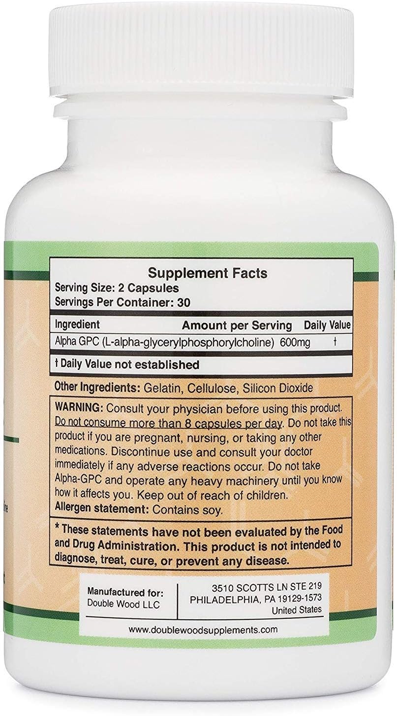 POWERFUL BIOAVAILABLE CHOLINE SUPPORT: Alpha GPC is the most bioavailable form of Choline currently available. Choline is a water-soluble nutrient which acts as a precursor to the neurotransmitter Acetylcholine, making Double Wood’s Alpha GPC Choline Capsules easily absorbed by the body and fast-acting