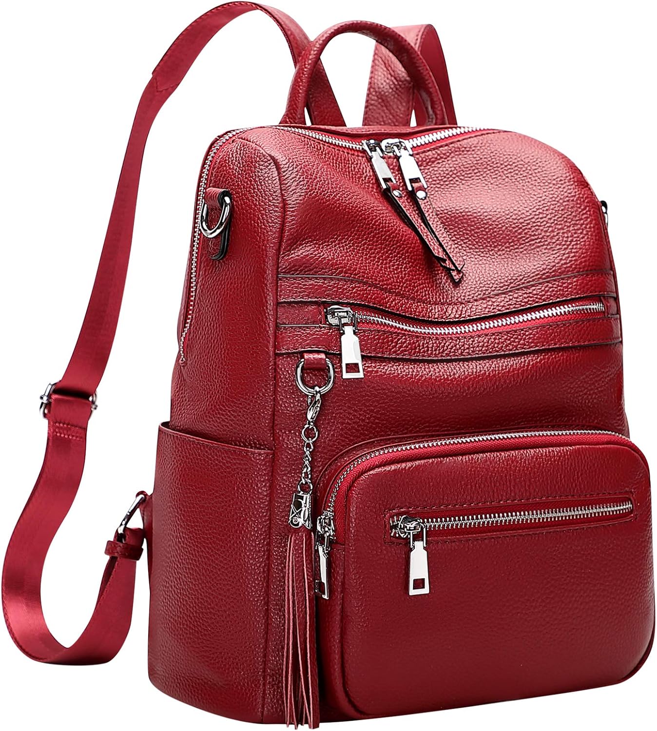 ALTOSY Genuine Leather Backpack Purse for Women Large Shoulder Bag With Laptop Compartment Multiple Pockets(S106 Red)