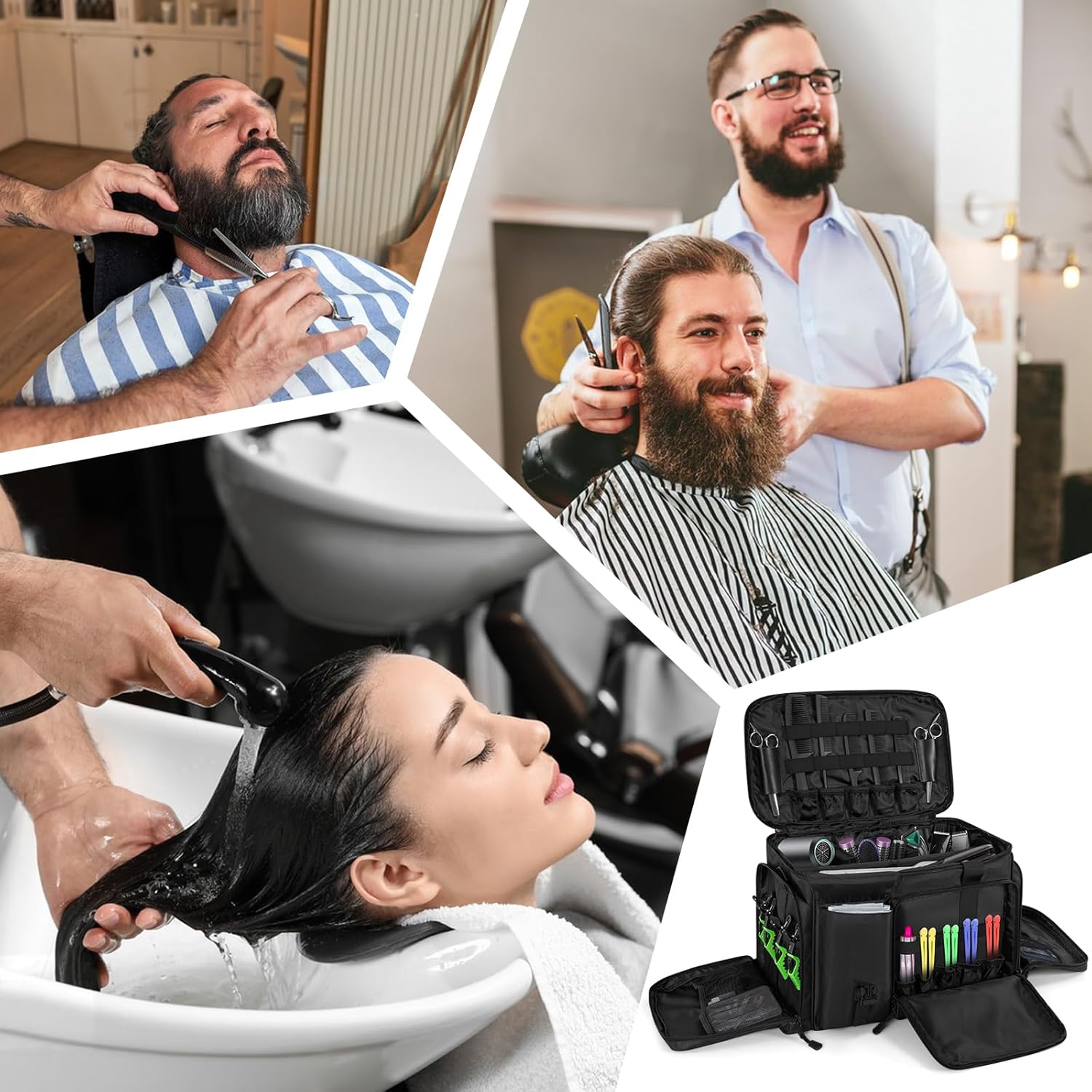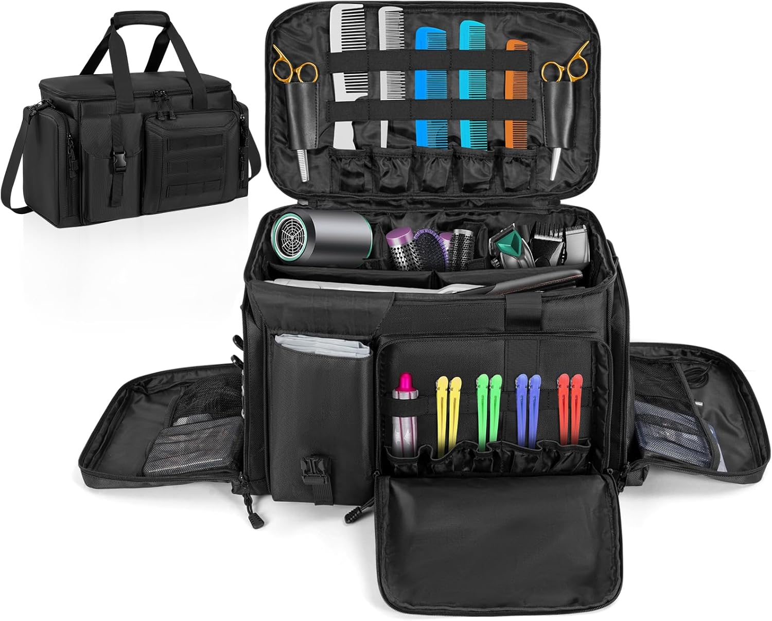 【Large Capacity Design】: 19 inches x 11.5 inches x 10.2 inches. The hairdressing bag can store scissors, combs, hair dryers, straighteners, brushes, spray bottles and other hairdressing tools