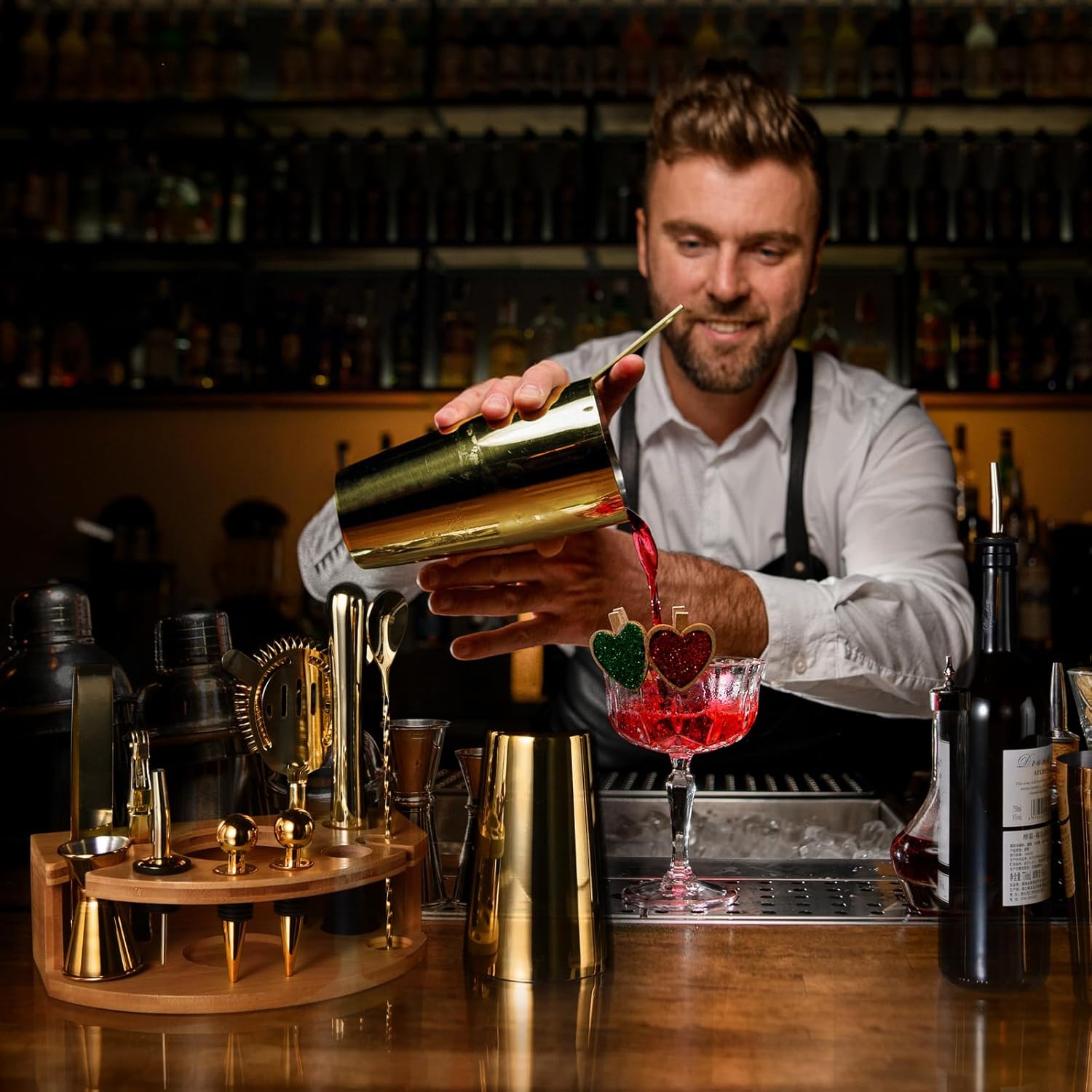 【Easy to Store – Stylish Bamboo Stand】: The unique semicircular bamboo stand makes the bar table very neat and beautiful. The drawers and cabinets in the kitchen are no longer chaotic. The accessories are made of the high quality stainless steel alloy. The surface is finely polished to prevent rust and easy cleaning. All accessories can be washed in the dishwasher to make life easier and faster.