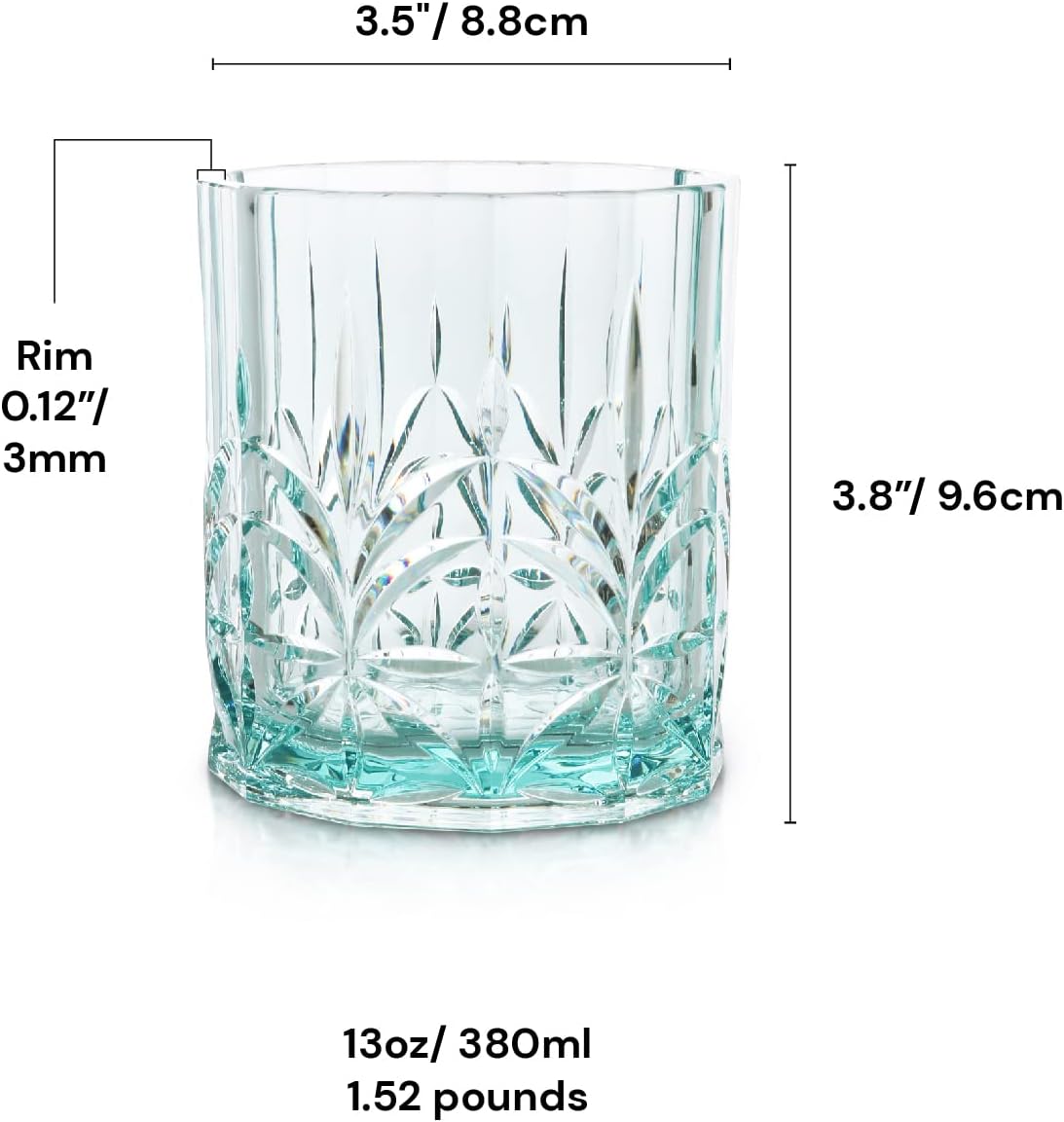 BELLAFORTE Shatterproof Tritan Plastic Short Tumbler, Set of 4, 13oz – Myrtle Beach Unbreakable Crystal Cut Old Fashioned Drinking Glasses for Whiskey – BPA Free – Dishwasher Safe – Teal