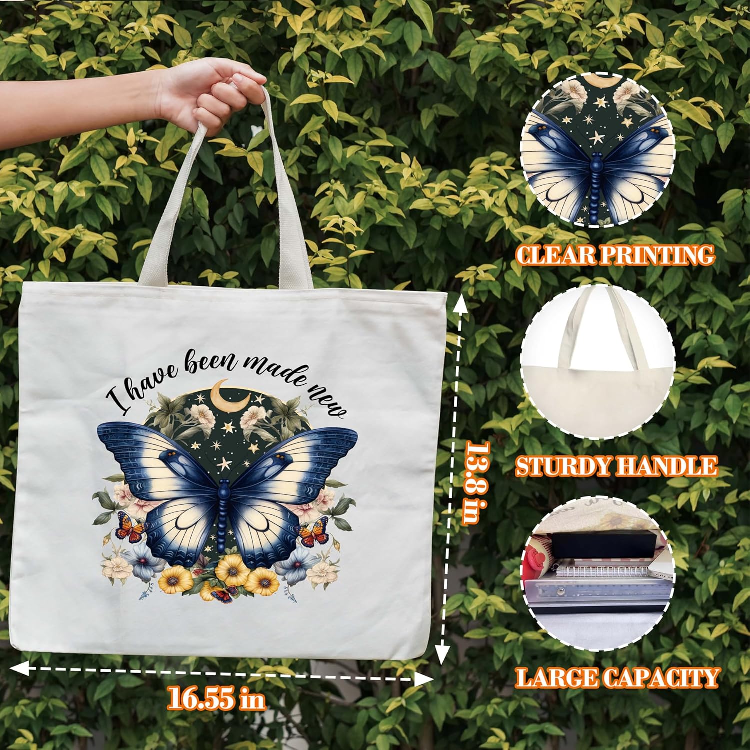 Boho Butterfly Tote Bag for Women, I Have Been Made New Canvas Tote, Inspirational Gift Bag, Bible Library Book Bag, Baptism Shoulder Bag Gifts for Best Friends Teaches Nurses -64