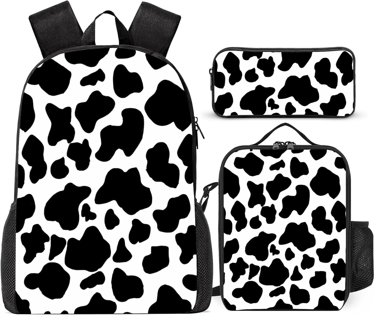 3-piece Set List: Includes 12.6” x 5.5” x 16.9” backpack, 7.9” x 3.1” x 9.8” lunch tote bag and 8.7” x 2.0” x 4.7” case. Sturdy polyester material, easy to wipe and dry,used of friendly material.