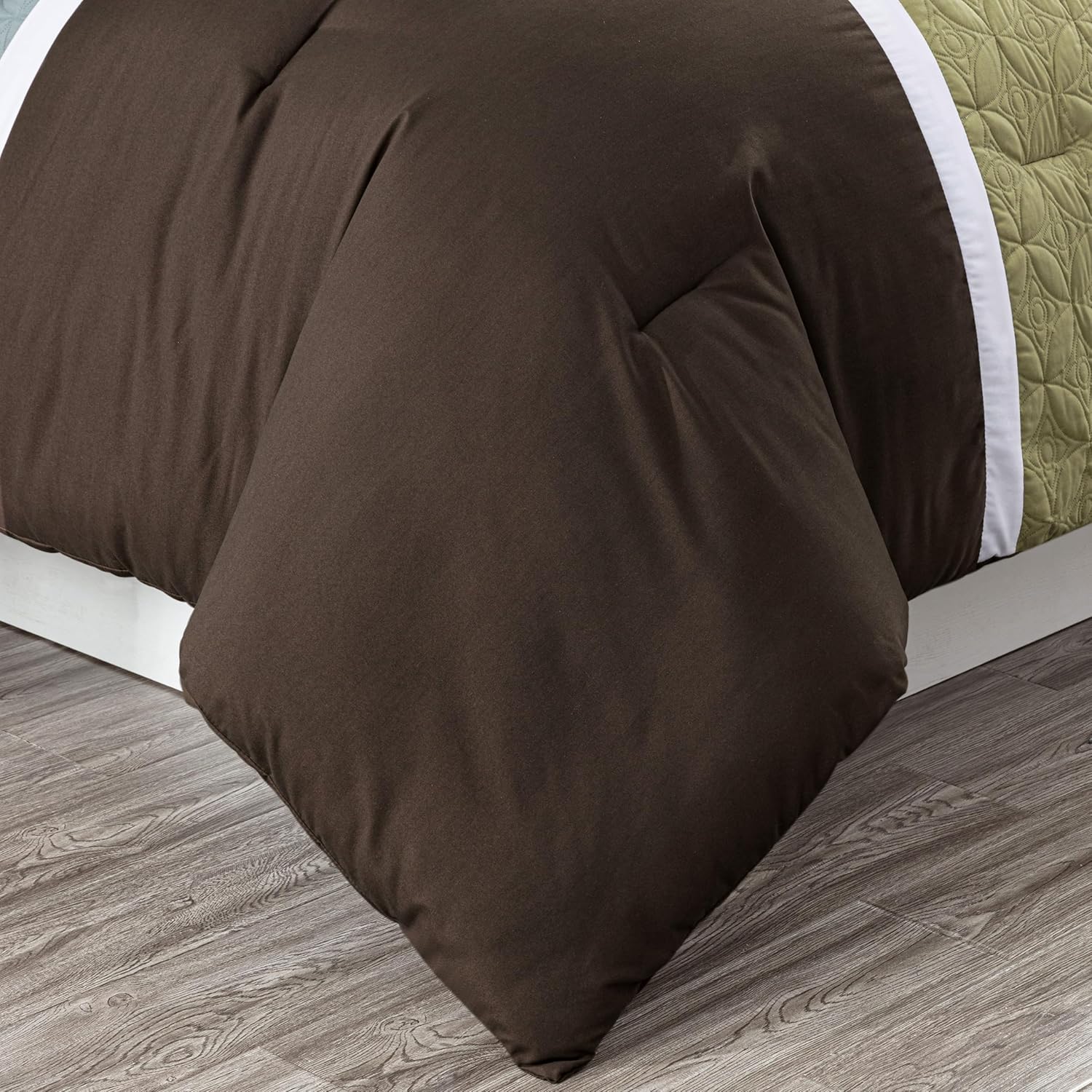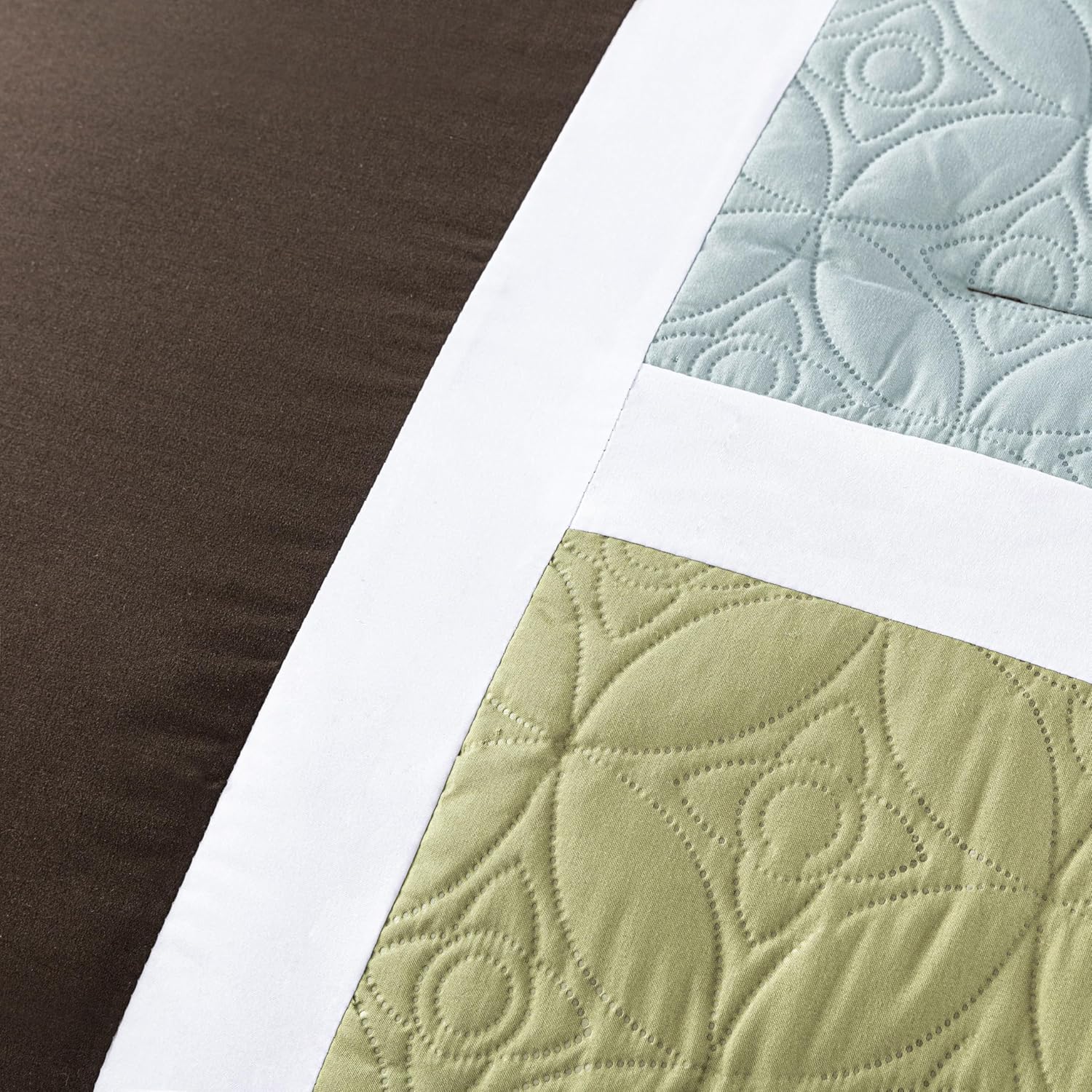 Chezmoi Collection Bernard 7-Piece Queen Bed in a Bag Comforter Set with Sheets – Lightweight Comforter Coffee Aqua Blue Sage Green Patchwork Quilted Medallion Bedding Set for All Season