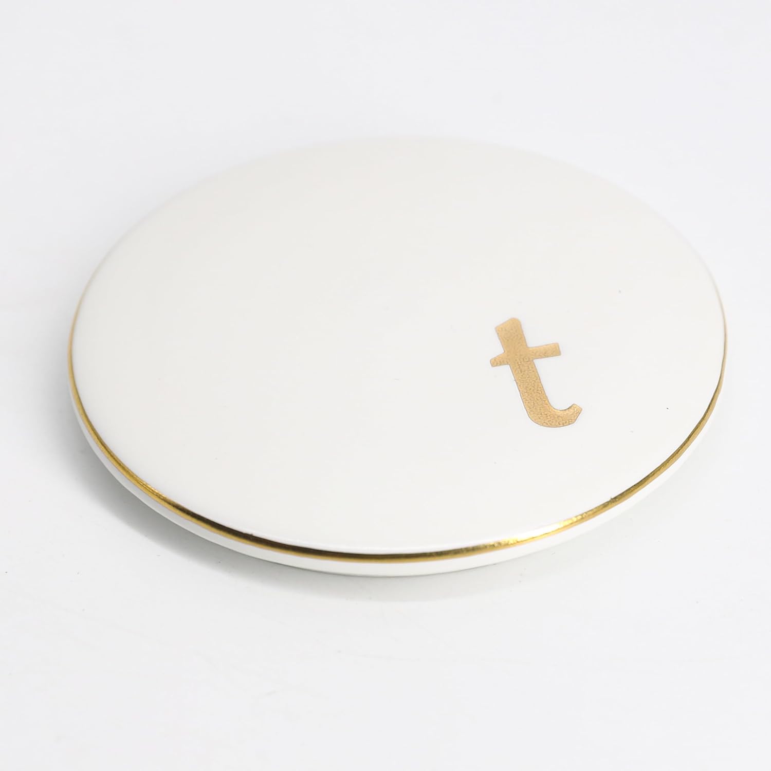 COLLECTIVE HOME – Ceramic Jewelry Box, Elegant Embossed Jewelry Holder, Trinket Organizer with Gold Monogram Lid, Storage for Ring Necklace Bracelet Earrings, Rings and Accessories (t)