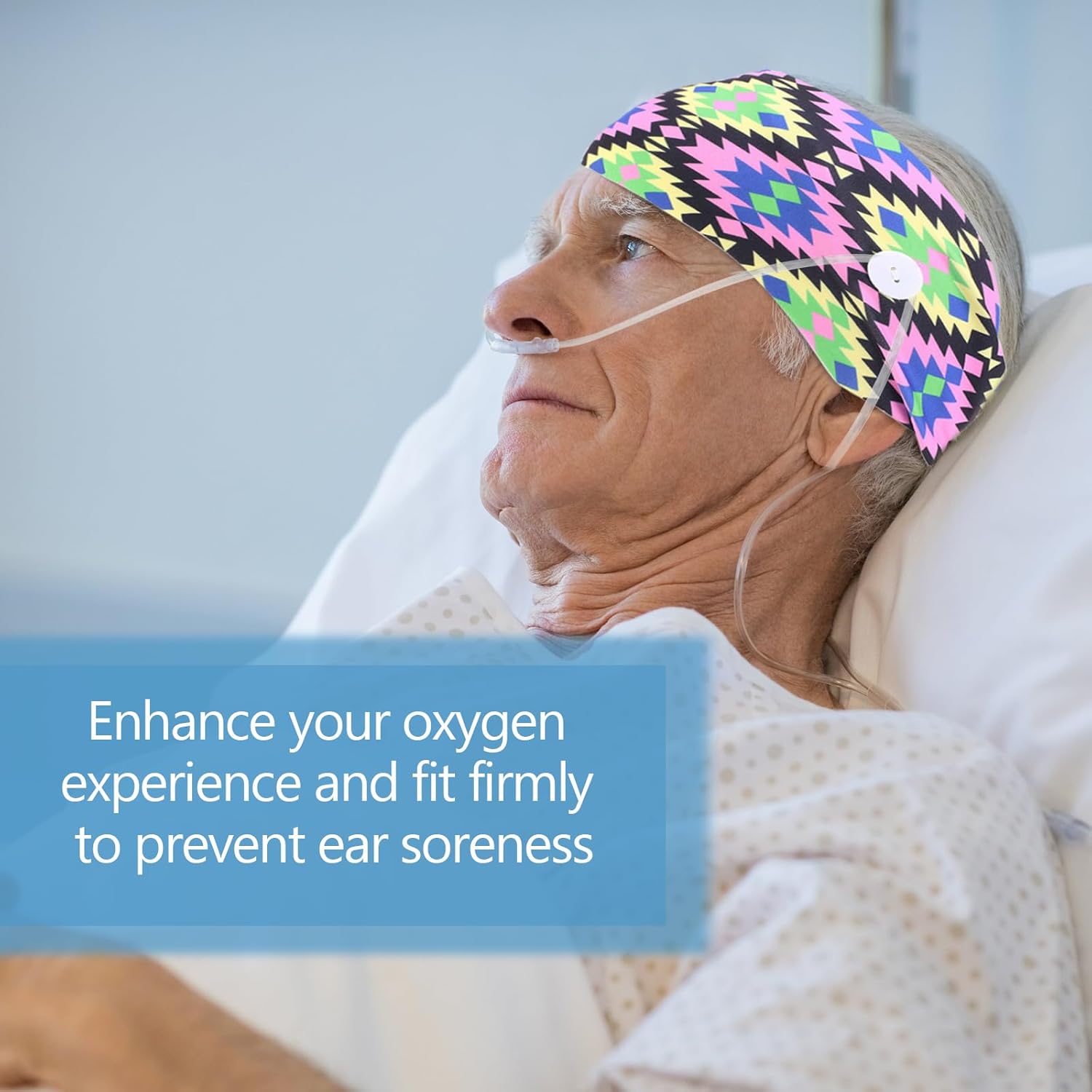 【Unique Hairband Design】 Our oxygen ear protectors headband features dual elastic buckles strategically placed to secure the cannula tube, providing a comfortable distance from the ears. Say goodbye to ear pain and cheek indentations, as this oxygen cannula headband accessories offers unparalleled relief.