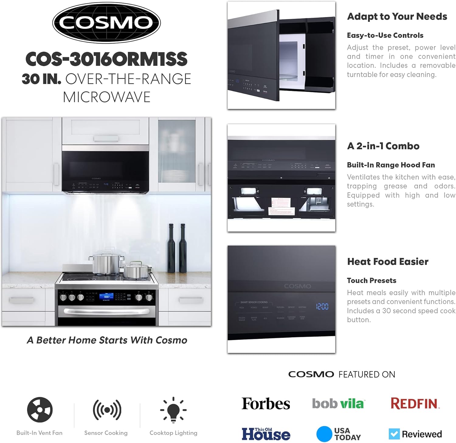 SENSOR REHEAT AND COOK MODE: Detects when food is done cooking and automatically turns off