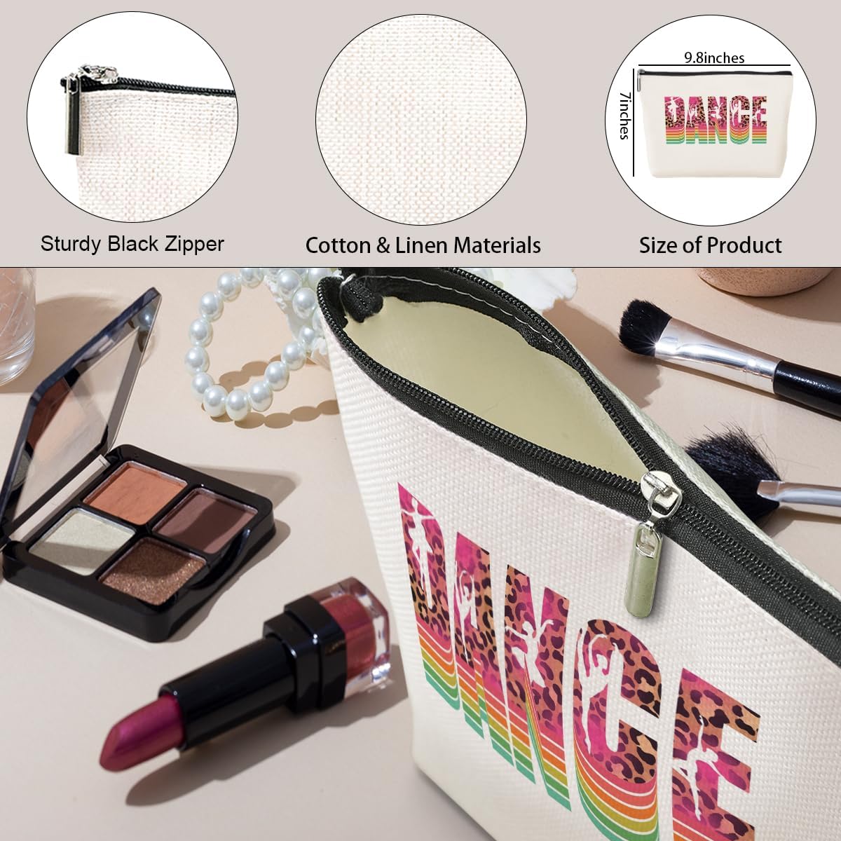 Material: This make up bag is made of cotton and linen, with a metal zipper, It is durable, easy to clean, lightweight, which is easy to be carried. Our cosmetic bag is with unique double-sided printed.