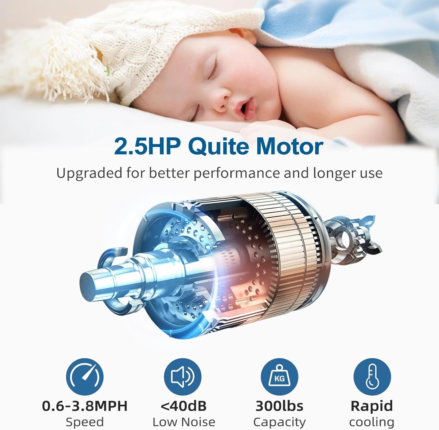 𝐏𝐨𝐰𝐞𝐫𝐟𝐮𝐥 𝐚𝐧𝐝 𝐐𝐮𝐢𝐞𝐭 𝐏𝐞𝐫𝐟𝐨𝐫𝐦𝐚𝐧𝐜𝐞: Equipped with a 2.5HP quiet motor, this under-desk treadmill supports up to 300 lbs and operates silently, making it perfect for both home and office use. The sturdy frame and multi-layer shielding minimize noise and absorb shock, ensuring a smoother, quieter run.