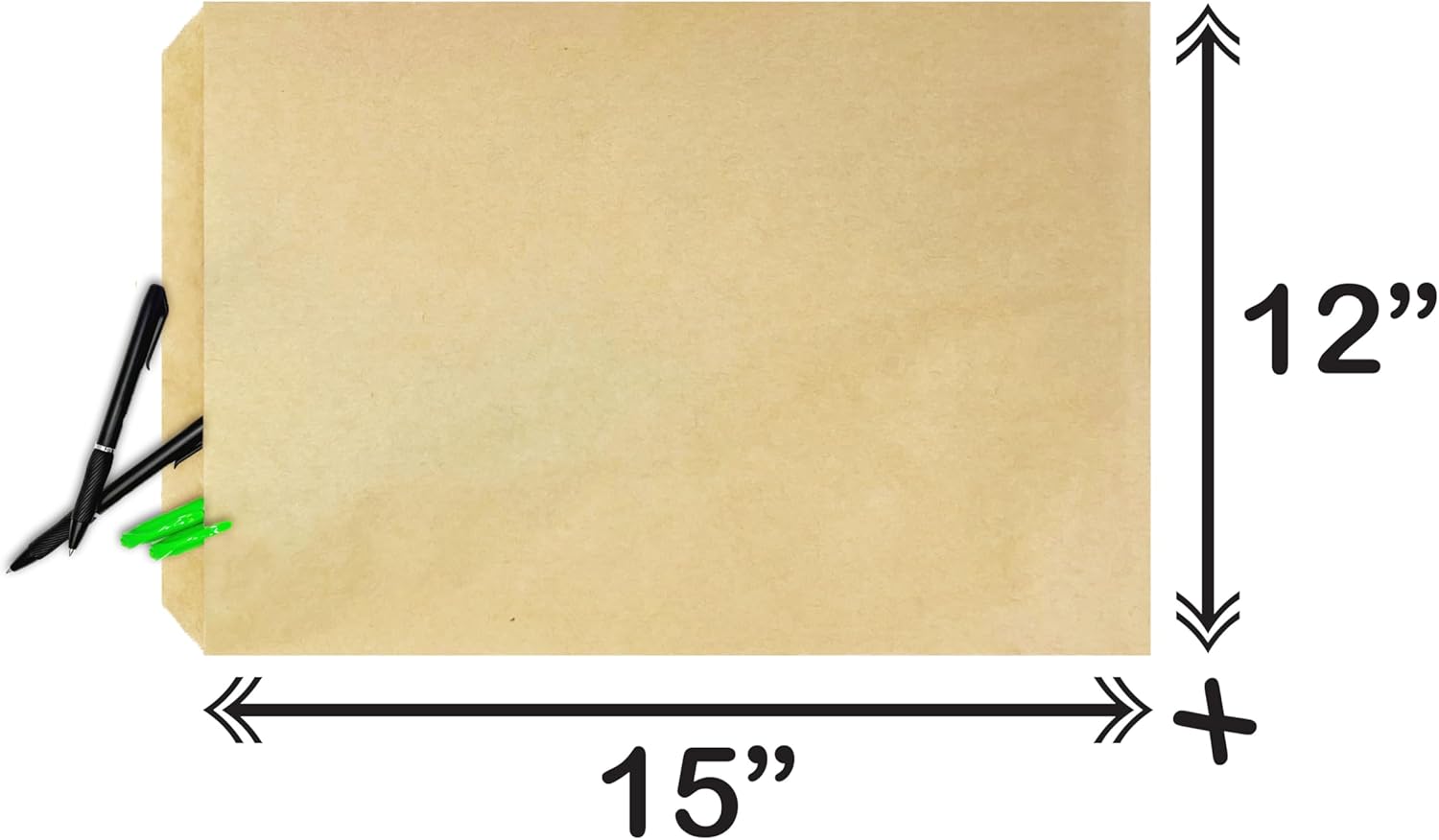 Flexicore Packaging Flat Brown Kraft Paper Bags Size: 12 Inch Wide X 15 Inch High | Count: 100 Bags | Color: Brown