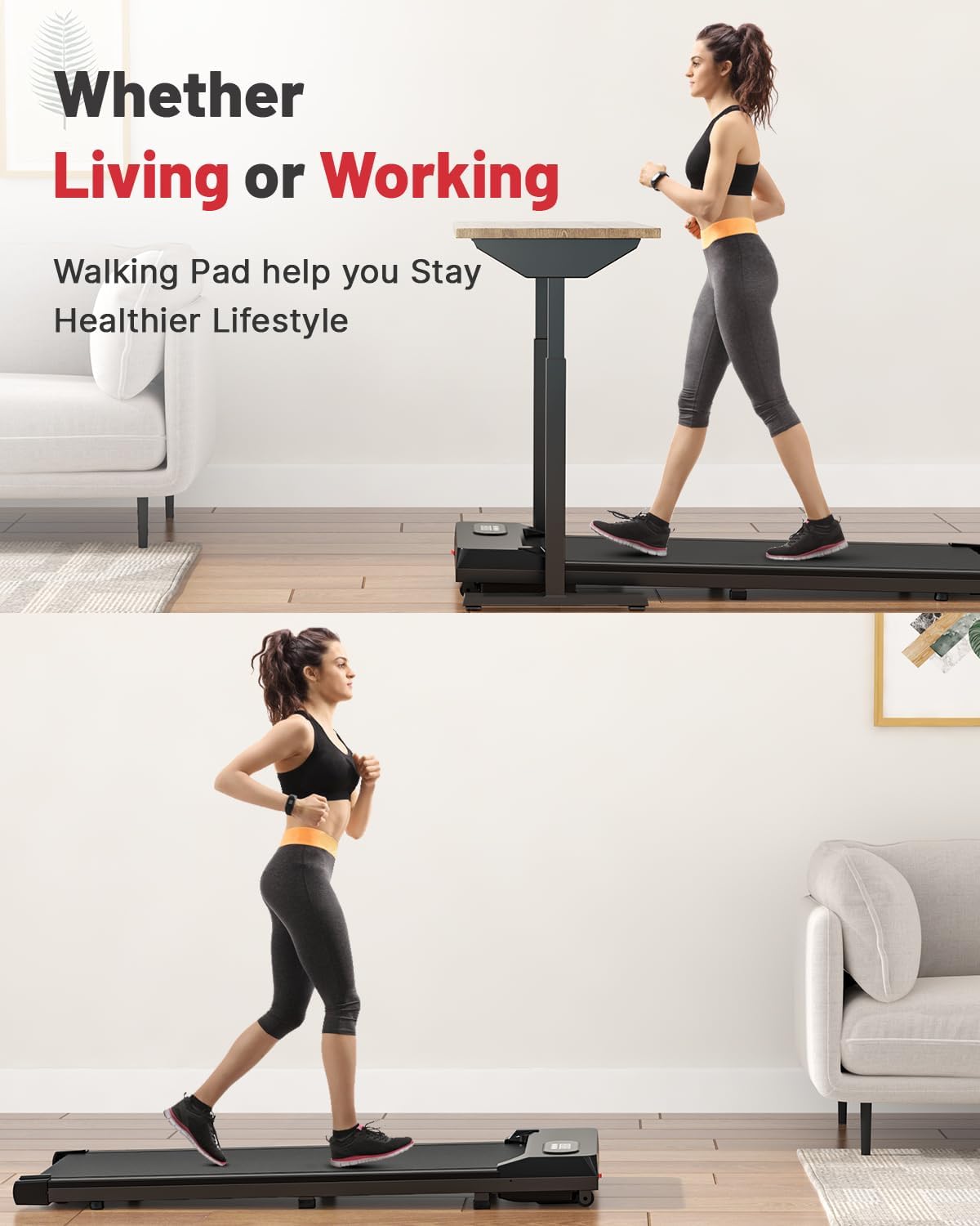 【Ultra Quiet & Powerful Walking Pad】The Compact walking pad is built with 2.5HP self-developed motor, which brings lower loss and longer lifespan, at the same time reduces the motor noise. 5-layer shock-absorbing running belt, allows you be in a quiet environment when you are exercising.