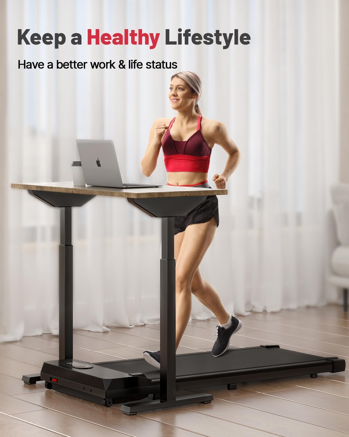 【0.6-5MPH for Walking or Running】The speed range of the desk treadmill is 0.6-5mph(1-8km/h), can meet the needs of you and your family. When you press “+” or “-” with the remote control, the speed of the walking pad will increase or decrease at 0.2 mph intervals.