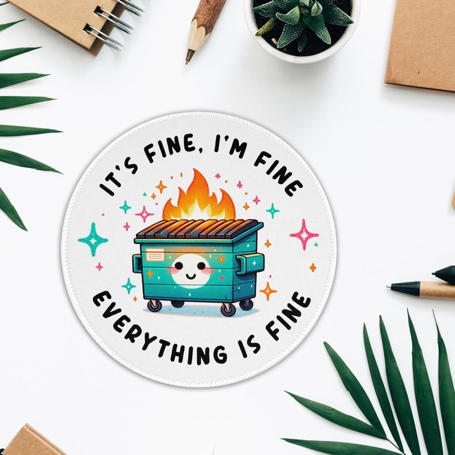 Be the first to review “Funny Round Mouse Pad Dumpster on Fire Cute Office Decor Desk Accessories Small Travel Mouse Pads for Wireless Mouse Laptop Mini Computer Mousepad 7.9×7.9 inches, It’s Fine”