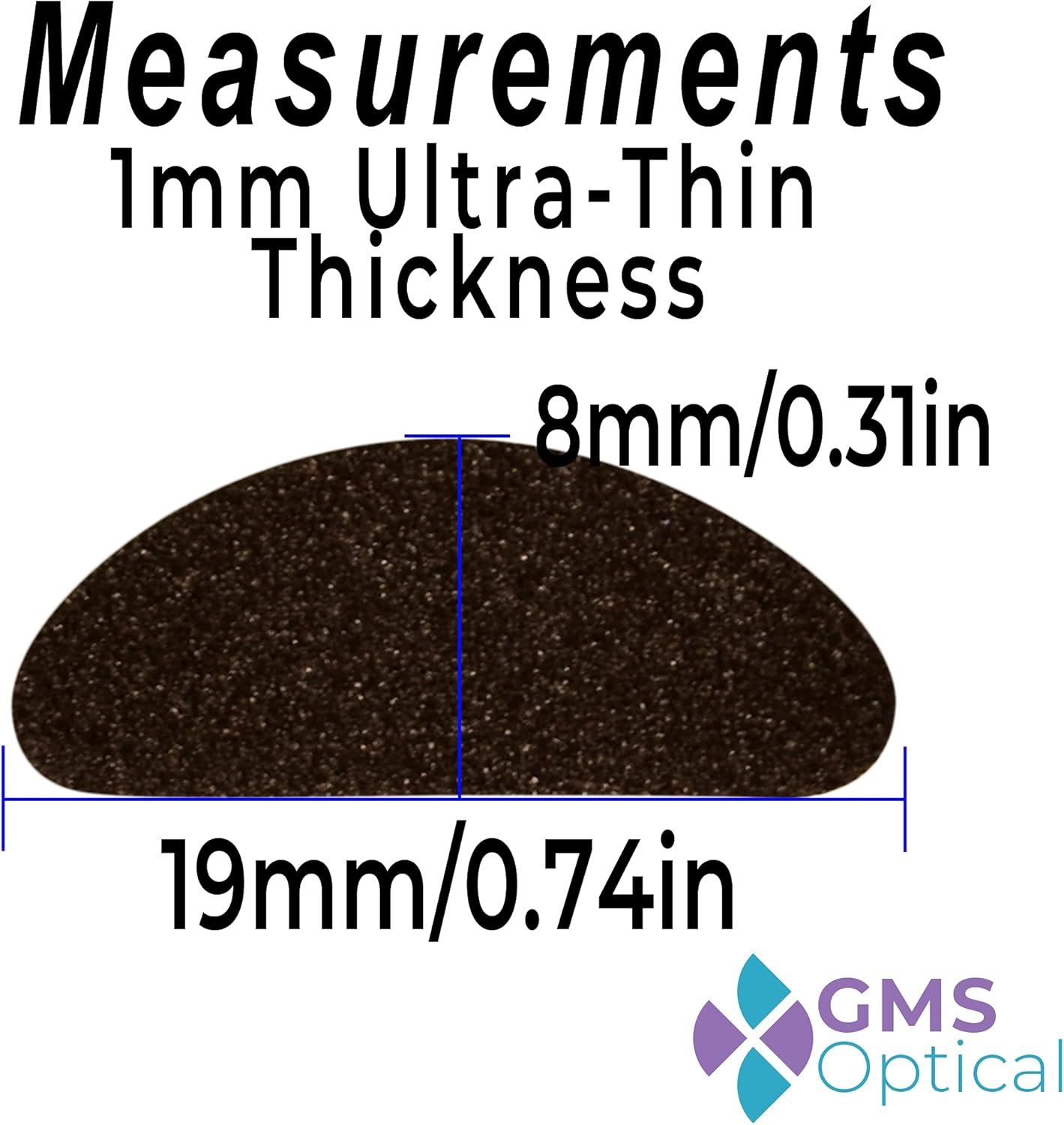 Be the first to review “GMS Optical Ultra-Thin Quality Adhesive Halfmoon Felt Nose Pads – Removes Soreness – Large (19mm x 8mm x 1mm) (5 Pair, Black)”