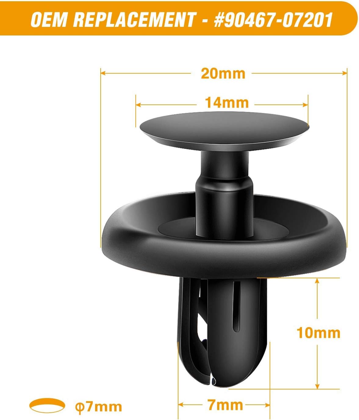Engine Under Cover Push-Type Retainer:Fits Into 7mm Hole .Replaces for Lexus & Toyota: 90467-07201 for Lexus ES300/330 and for Toyota Avalon, Camry & Solara 2002-