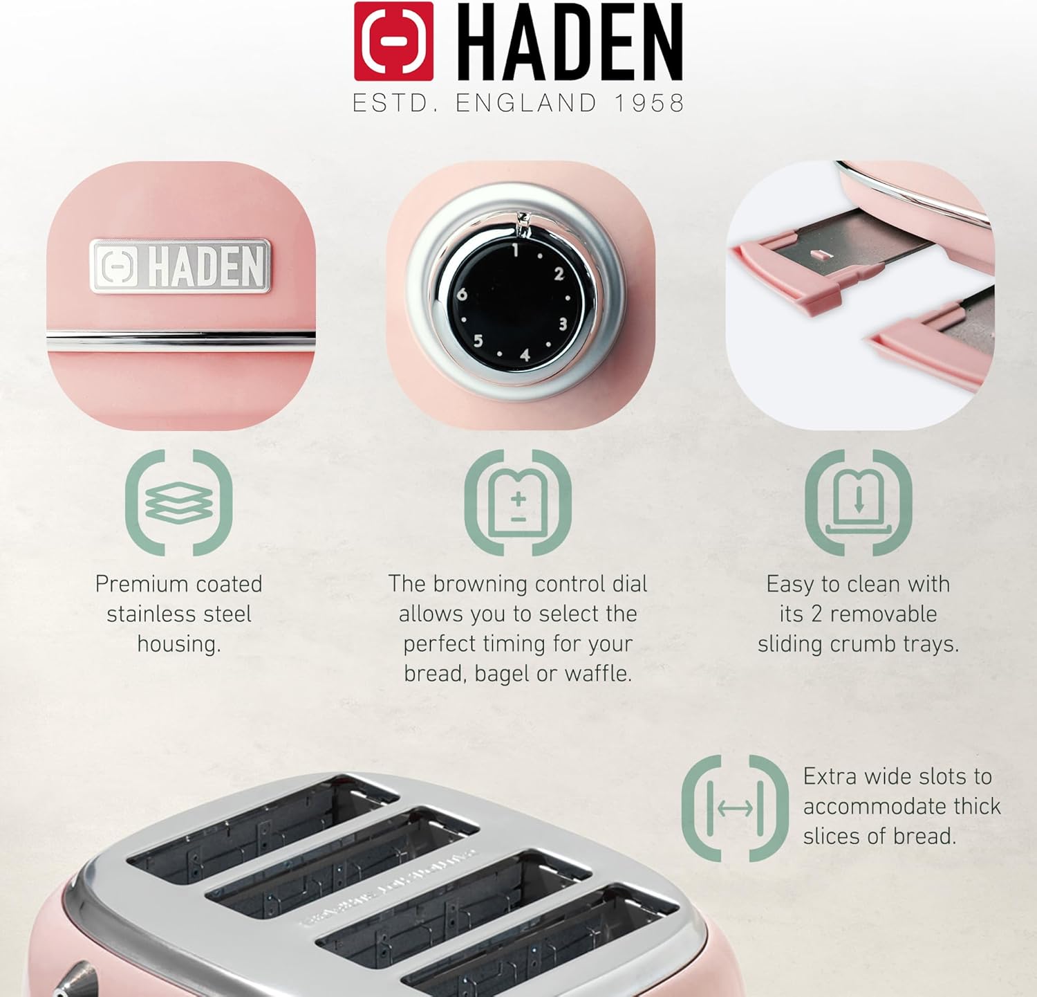 Trusted Since 1958: Offering quintessential British designs, Haden creates elegant home appliances with innovative technology and is trusted by customers as the Go-to British Breakfast Brand. Taking inspiration from British homes, architecture, and landscapes, Haden embodies a perfect balance between form and function.