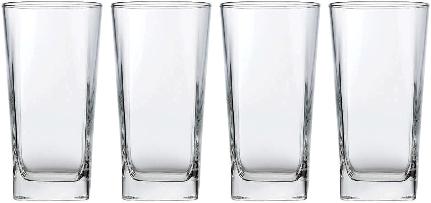 Home Essentials & Beyond Highball Glasses 16 Oz. Set of 4 Tall Square Glass Cups Premium Quality Beverage Cooler Glassware. Uses for Bar Glasses, Water, Juice, and Cocktails.