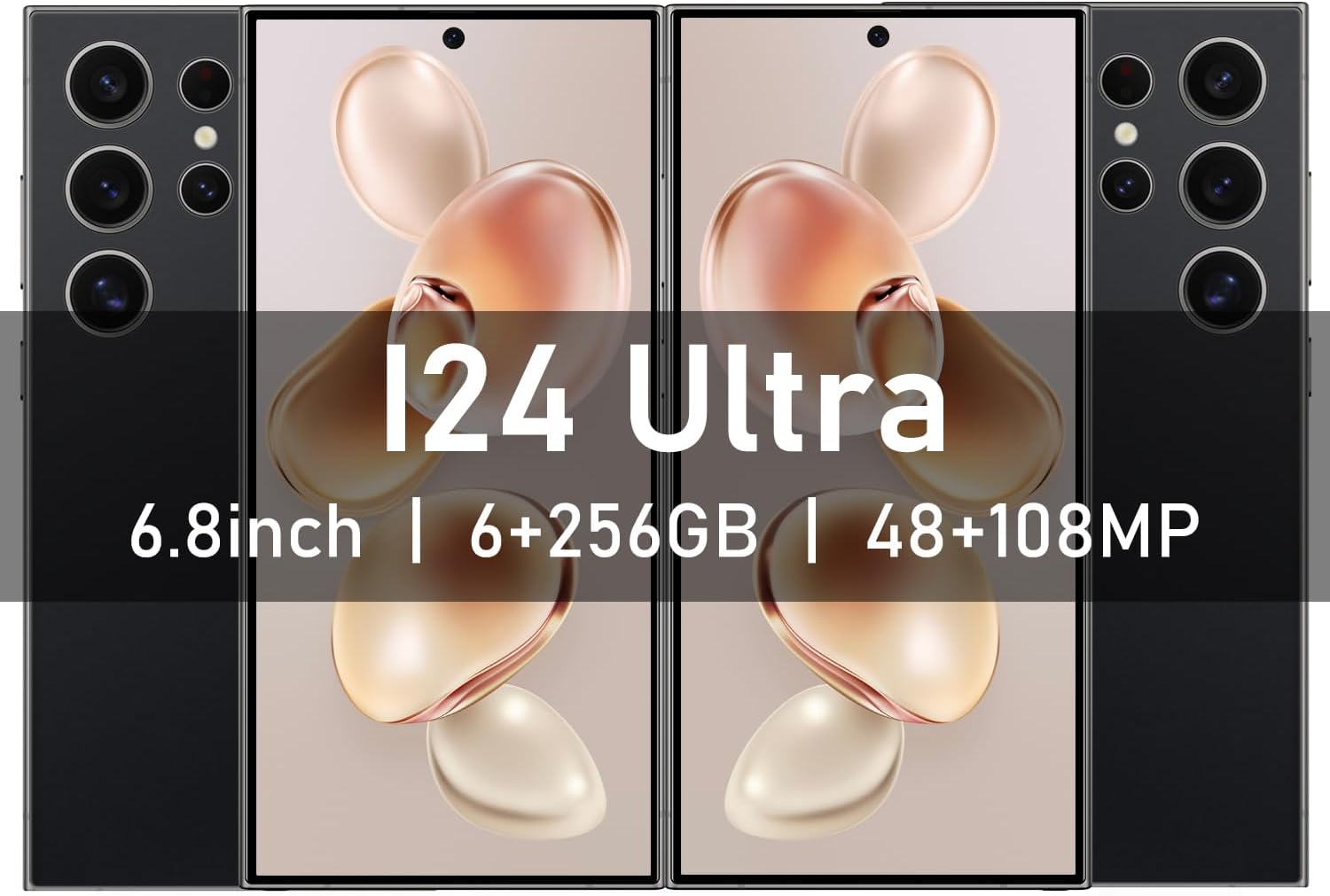 I24 Ultra Unlocked Smartphone,6GB+256GB Built in Pen with128GB Memory Card Cell Phone Android 13, 6.8″ HD Screen Unlocked Cell Phone, 6800mAh, 48MP+108MP Dual Camera/Fingerprint Lock (Black)