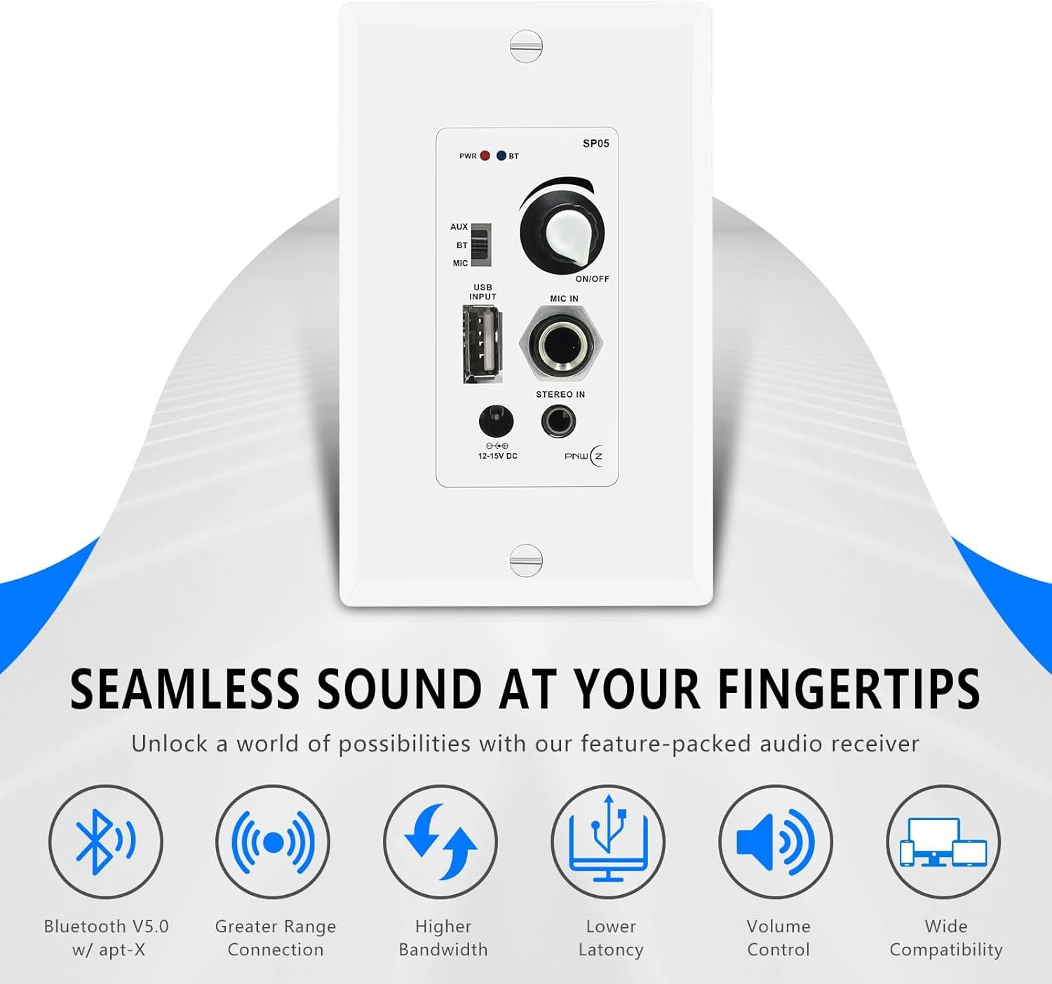 Wirelessly compatible with Bluetooth: This Bluetooth in wall amplifier built-in wireless Bluetooth capability enables seamless transmission of music to connected devices or speaker systems, ensuring smooth playback. Compatible with iPhones, iPads, iOS and Android smartphones, tablets, personal computers, laptops, and desktops alike, this amplifier boasts a wireless range exceeding 30 feet.