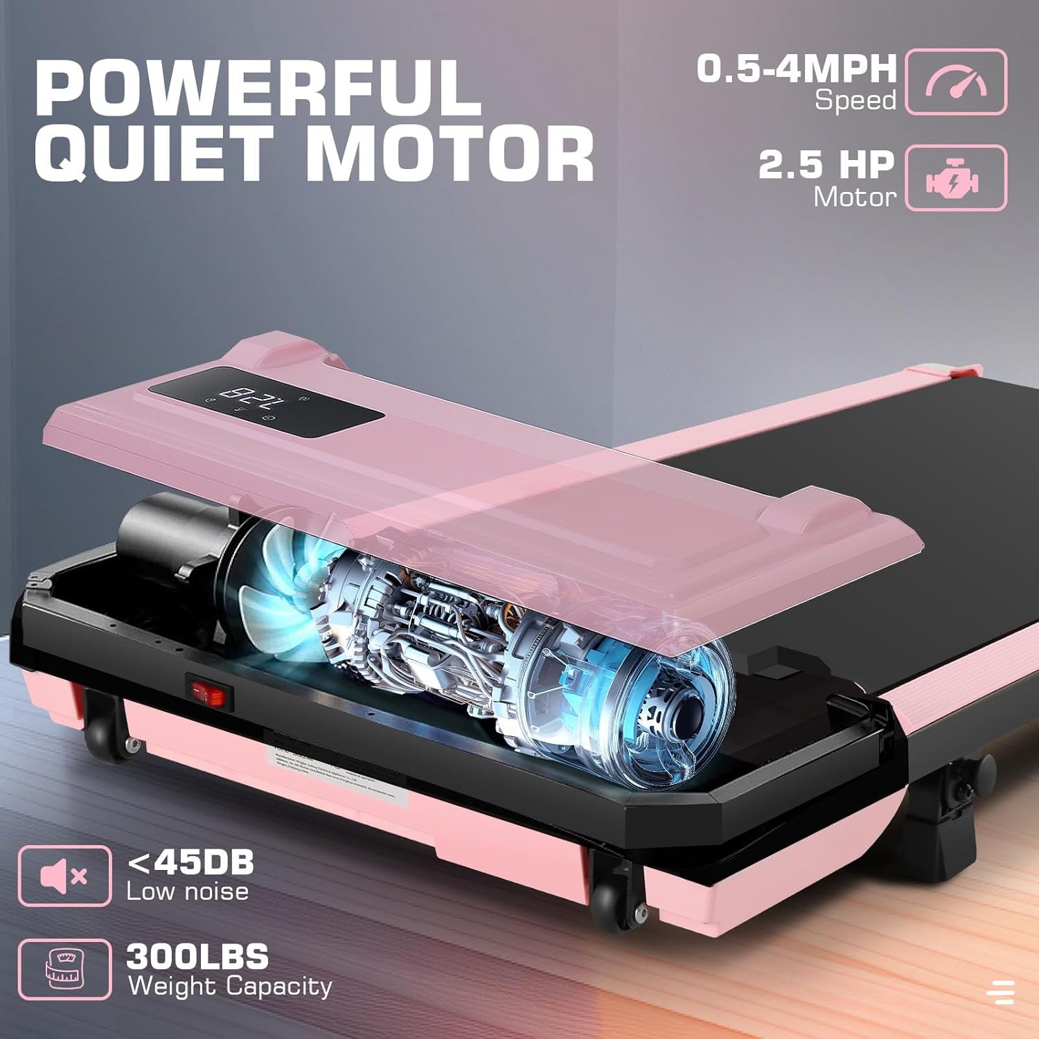 🏃【2.5HP Powerful Silent Motor】This incline treadmill for home has a 2.5HP motor with a 300 lbs capacity, operating at noise levels below 45 dB. It’s perfect for home and office use without disturbing others, making it a top choice among incline under desk treadmills.