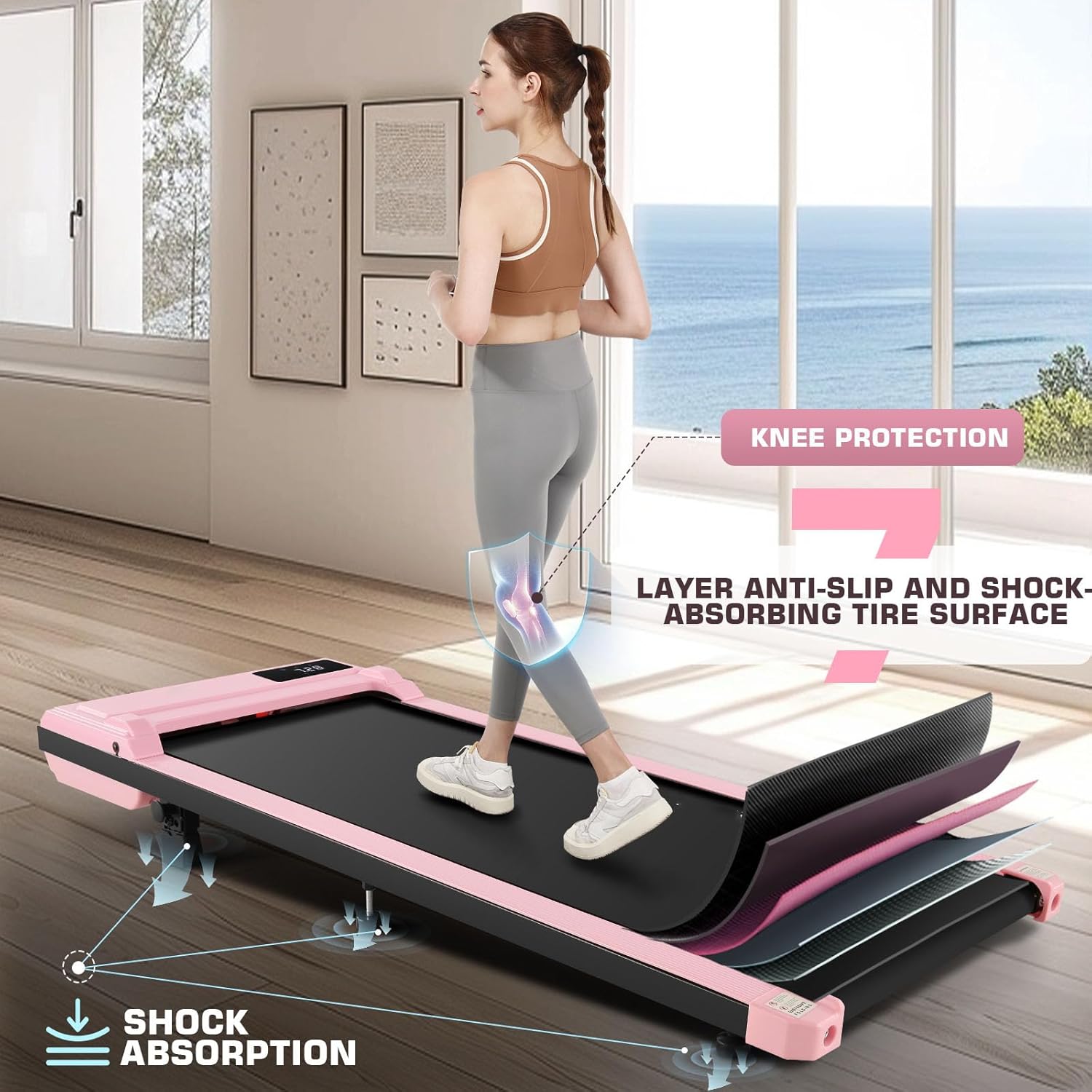🏃【Walking Pad Treadmill with Incline】This Walking Pad Treadmill for Home features a professional incline design. The incline helps burn extra calories and protects your knees. Perfect for higher intensity workouts and calorie burning, making it an ideal incline treadmill for home use.