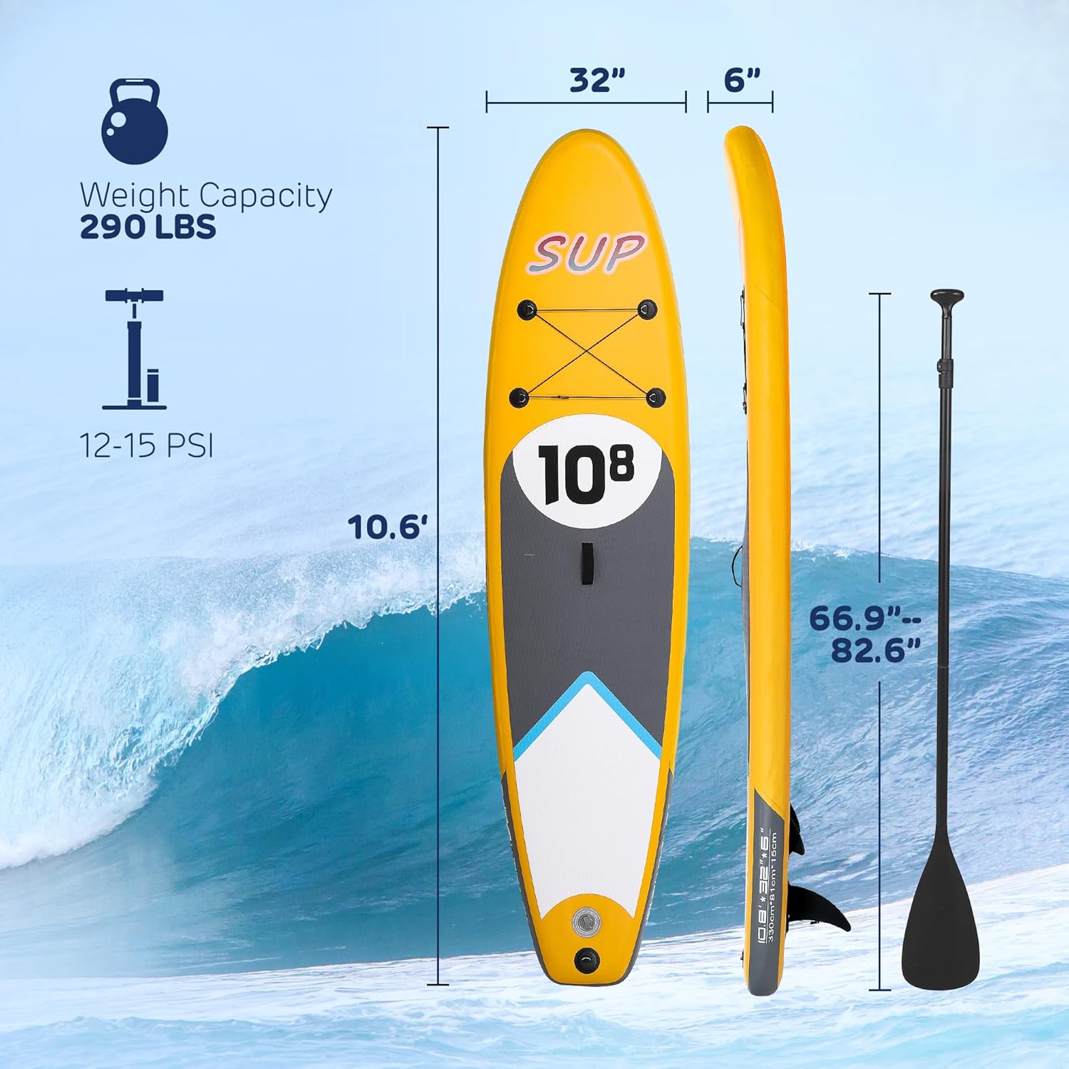 Inflatable Paddle Boards for Adults, PVC Stand Up Paddle Board 6 Inches Thick, Paddleboard with Non-Slip SUP Bottom Fin, Hand Pump and Carry Bag Inflatable Sup for Beginners Yellow