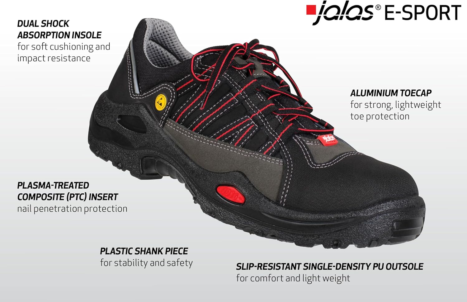 A light, comfortable and attractive safety shoe with water-repellent properties and highest (S3) protection. The PU-coated and split leather upper and ventilating inner sole offer excellent safety and ergonomics. The oil-resistant nitrilee outer sole gives outstanding grip in the slip, while our JALAS aluminium toe cap, Plasma treated textile puncture protection and keep feet safe.