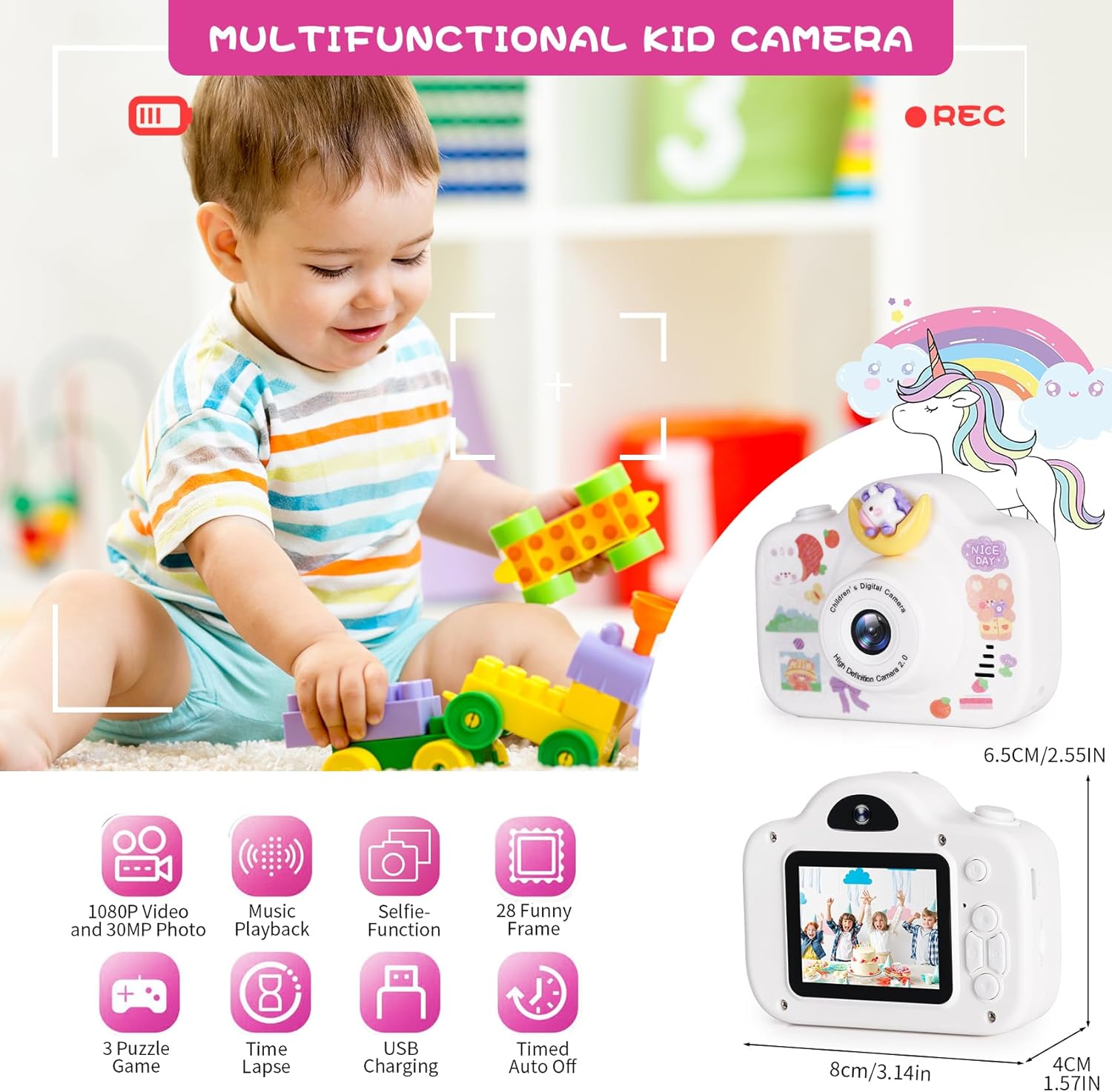 🌟Rich accessories – equipped with themed cartoon stickers to add more fun!Come with 1*USB data line, 1*32GB micro SD card, 1*card reader, 1*Theme lens decoration,1*Cute camera bag, 1*cartoon sticker, and 1*camera strap, providing you with more storage space, fun accessories, and easy carrying options to fully enjoy your photography experience!
