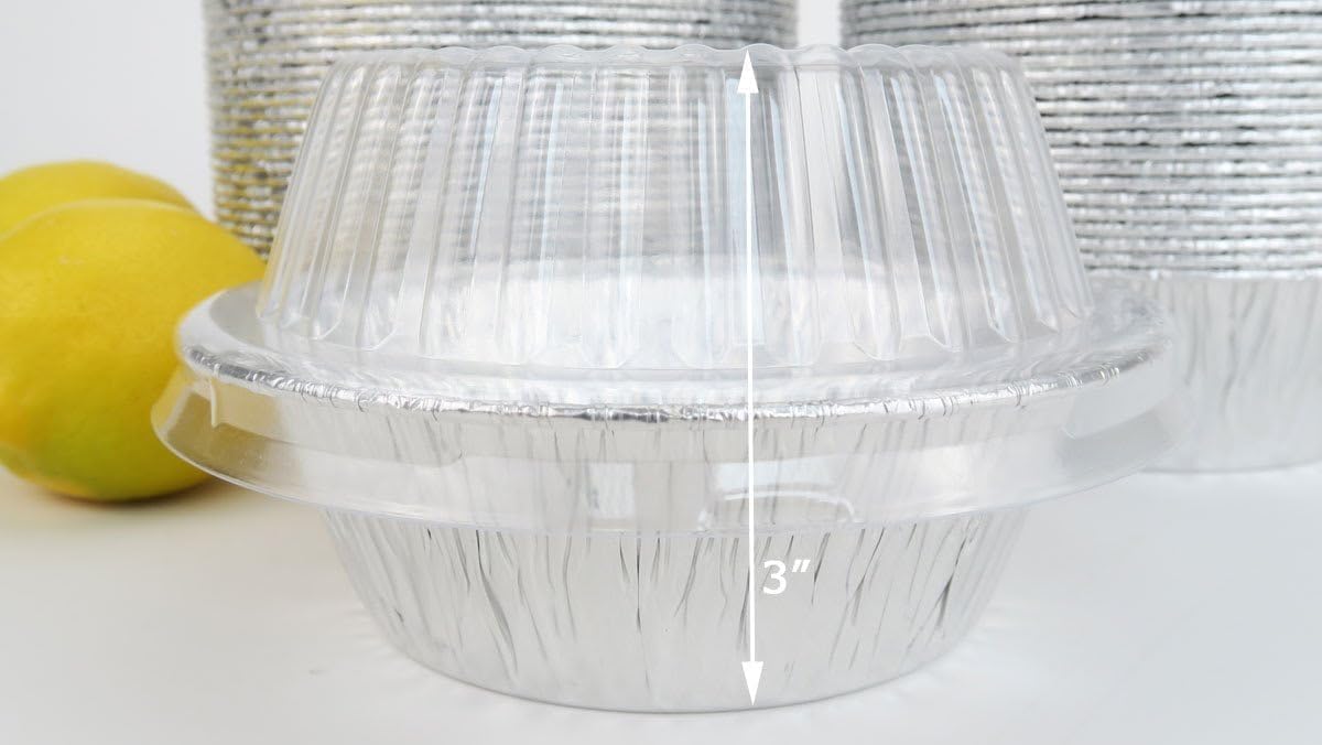 KitchenDance Disposable Aluminum Extra Deep Meat Pan with Clear Snap on Lid – 5 3/4 Round Oven Safe Aluminum Foil Pot Pie Pan, Aluminum Baking Pan Perfect for Cobblers and Casseroles, 2400P (250)