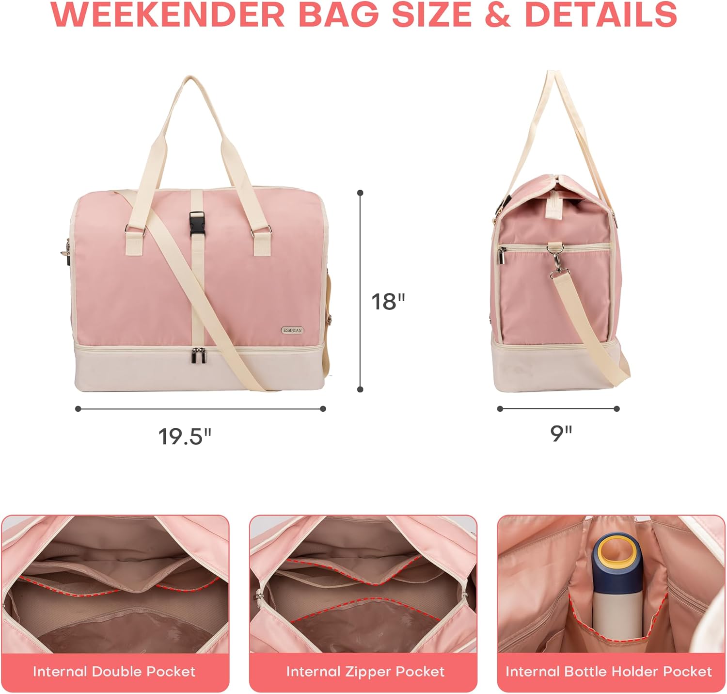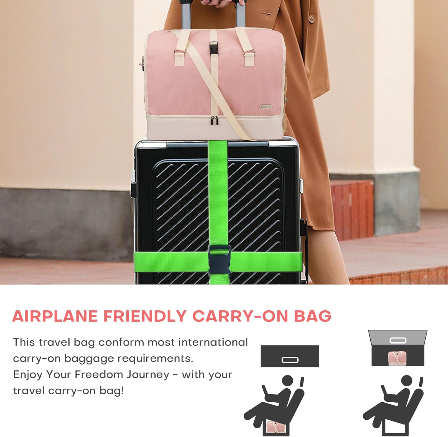 Large Duffle Bag for Travel with Shoes Compartment & Wet Pocket, Large Duffle Bag for Travel for Airplane Travel, Trip, Gym, Labor and Delivery, Pink A