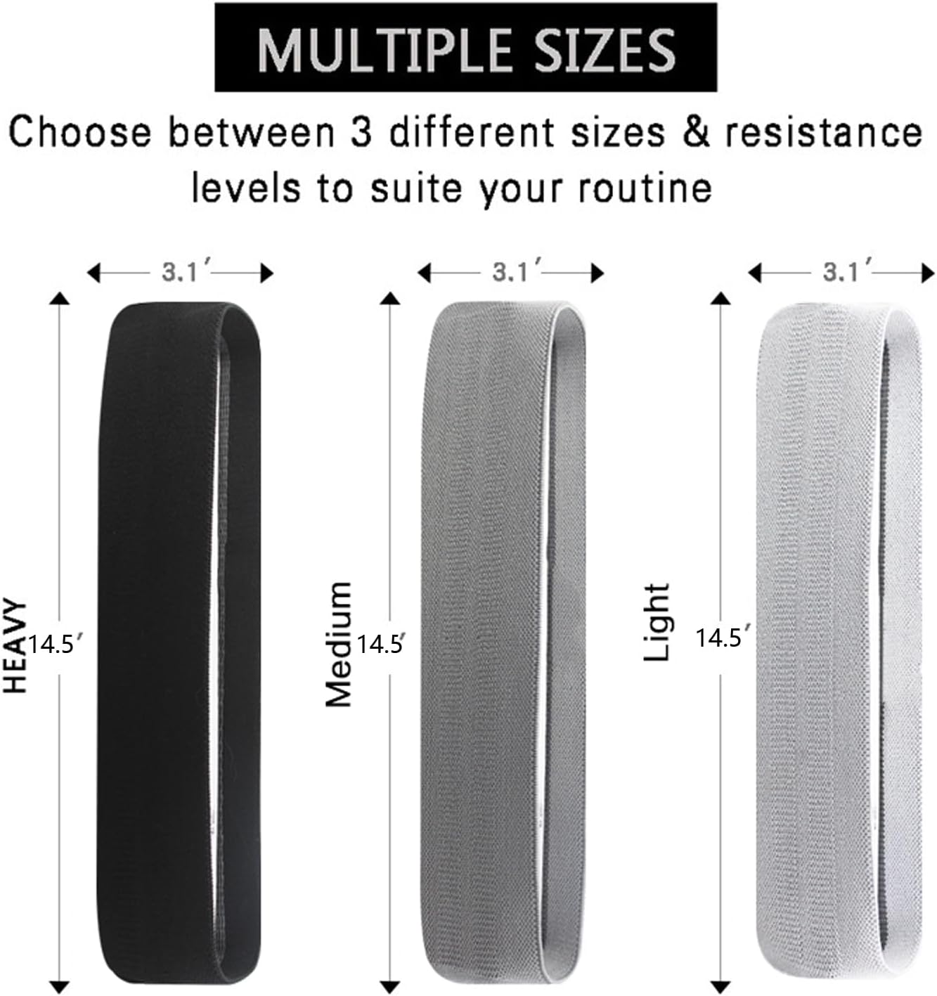 Three piece set: This set includes three color tones: light gray, gray, and black. Different colors will generate varying degrees of resistance, with resistance ranging from 18~32lbs. 30~50lbs. 45-70lbs You can do bodhisattva, yoga, etc