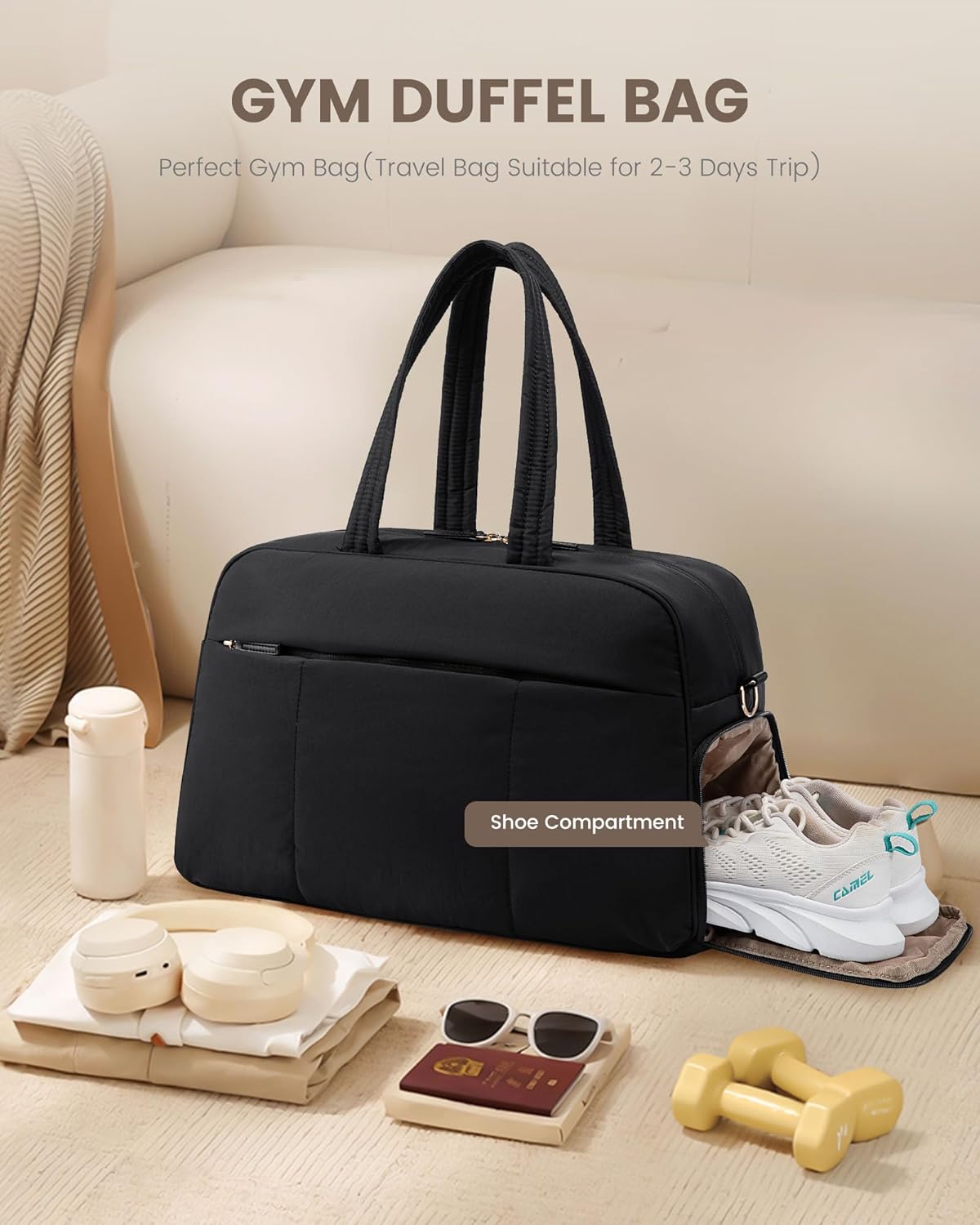 LOVEVOOK Travel Duffel Bag, Gym Bag for Women with Shoe Compartment, Carry on Weekender Bags with Wet Pocket for Women,Water Resistant Puffer Bag Workout Bag for Sports Gym