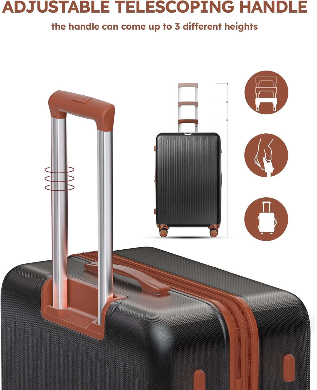 Easy to Use and Maneuver:This luggage set is made of lightweight and durable ABS material with 360° multidirectional smooth spinner wheels, a 3-step telescoping handle, and it helps maintain the optimal condition of your luggage while being used