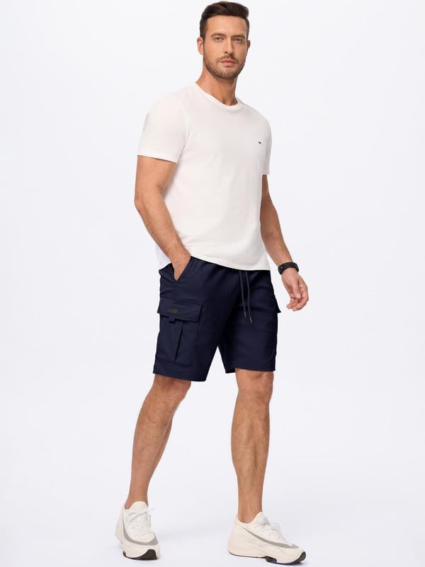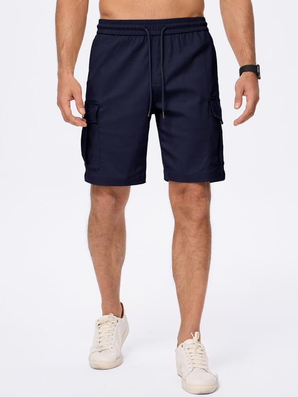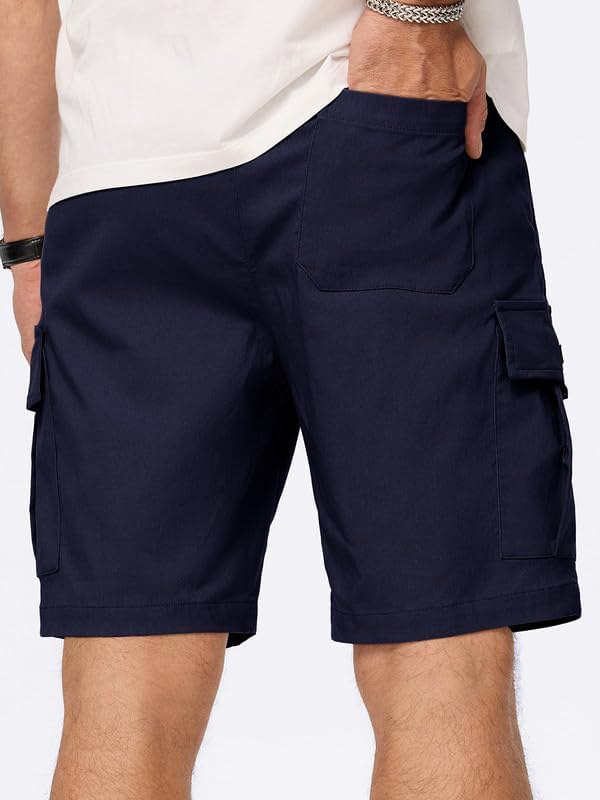 Mens Cargo Shorts Casual Solid Color Lightweight Summer Outdoor Work Cargo Shorts with Multi Pockets