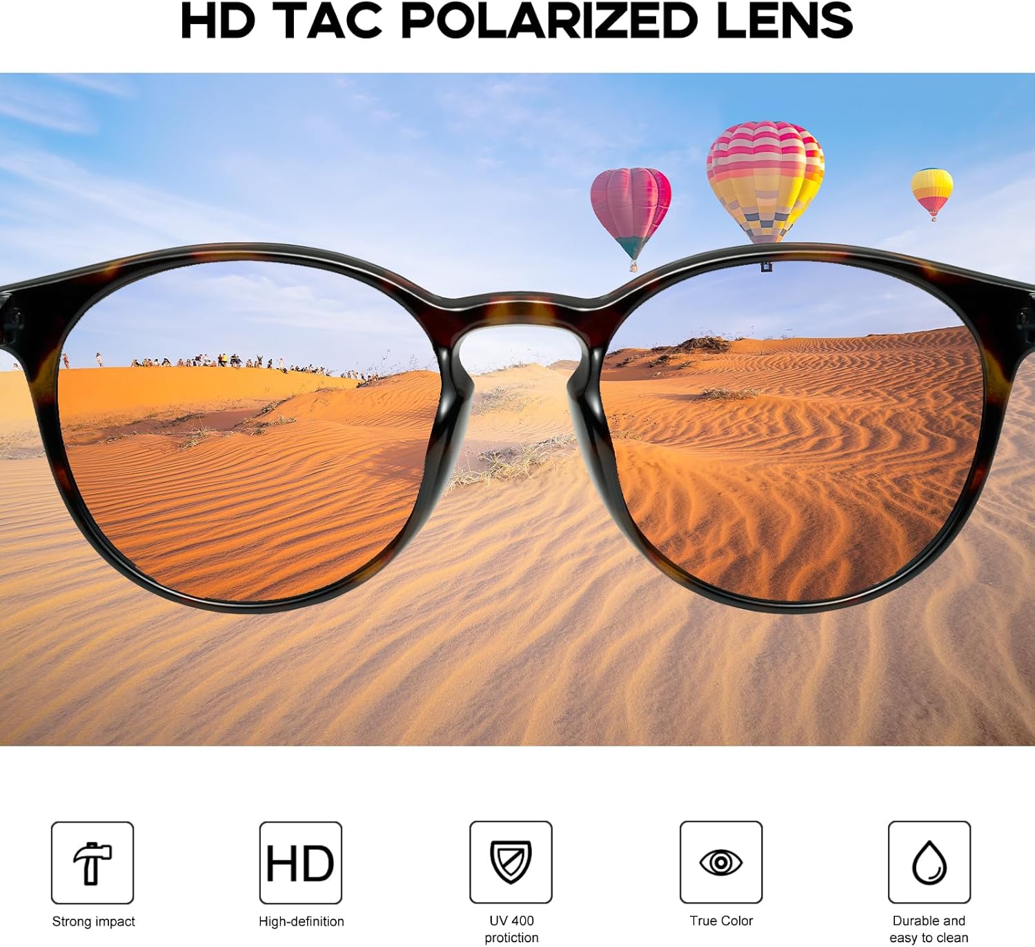 mosanana Round Polarized Sunglasses with Spring Hinges for Women and Men MS52361