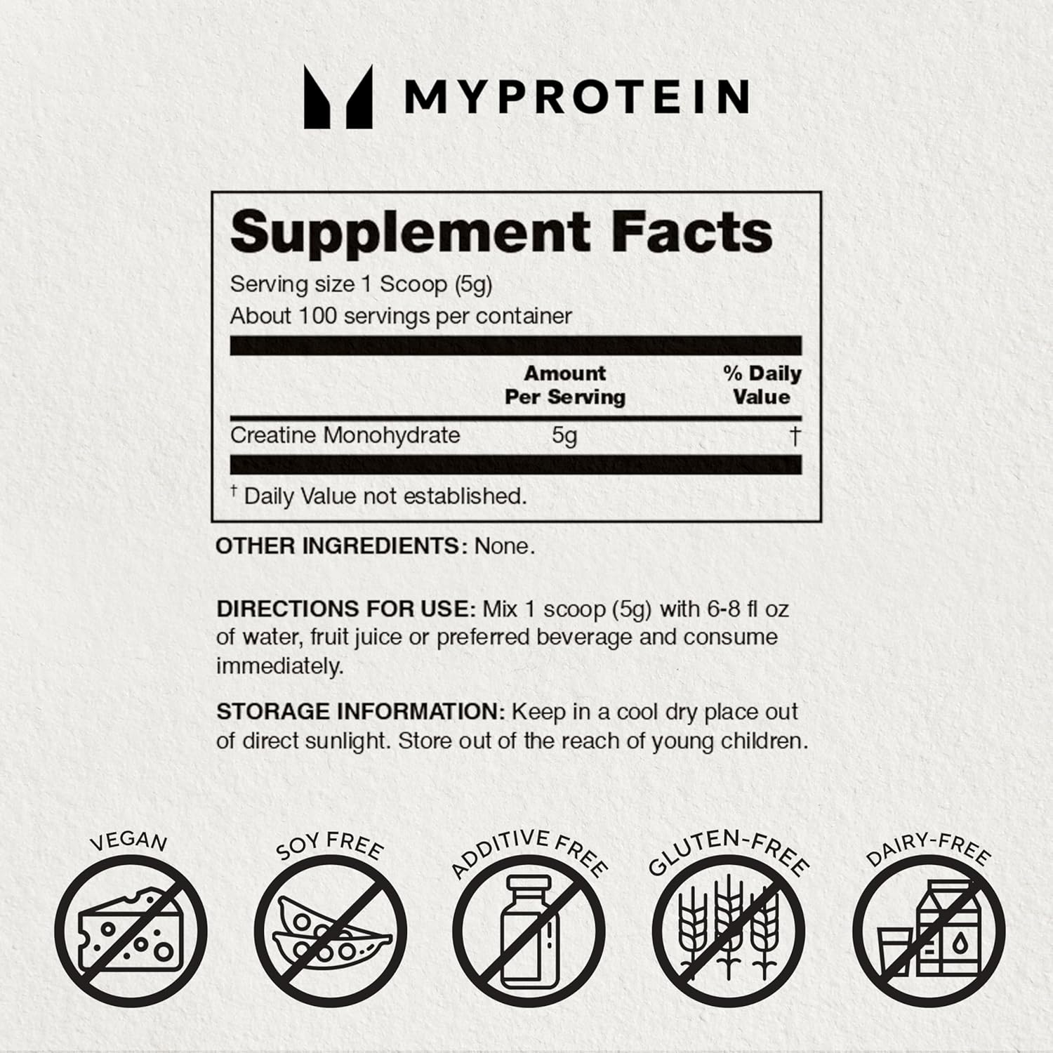 Myprotein Creatine Monohydrate Powder, 1.1 Lb (100 Servings) Pure Unflavored Creatine Powder, Post/Pre Workout Supplement for All Sports & Exercises