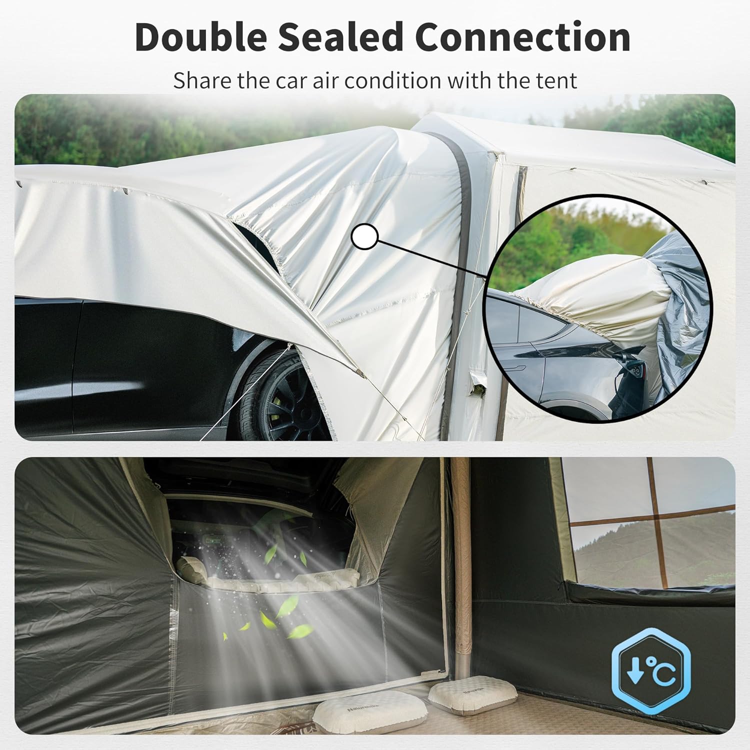 Versatile Tent:This car tent is a free standing tent with a a detachable door, which can be used separately as a camping tent without connect to the car; Double sealed connection without gap, you can share the car air condition in the tent