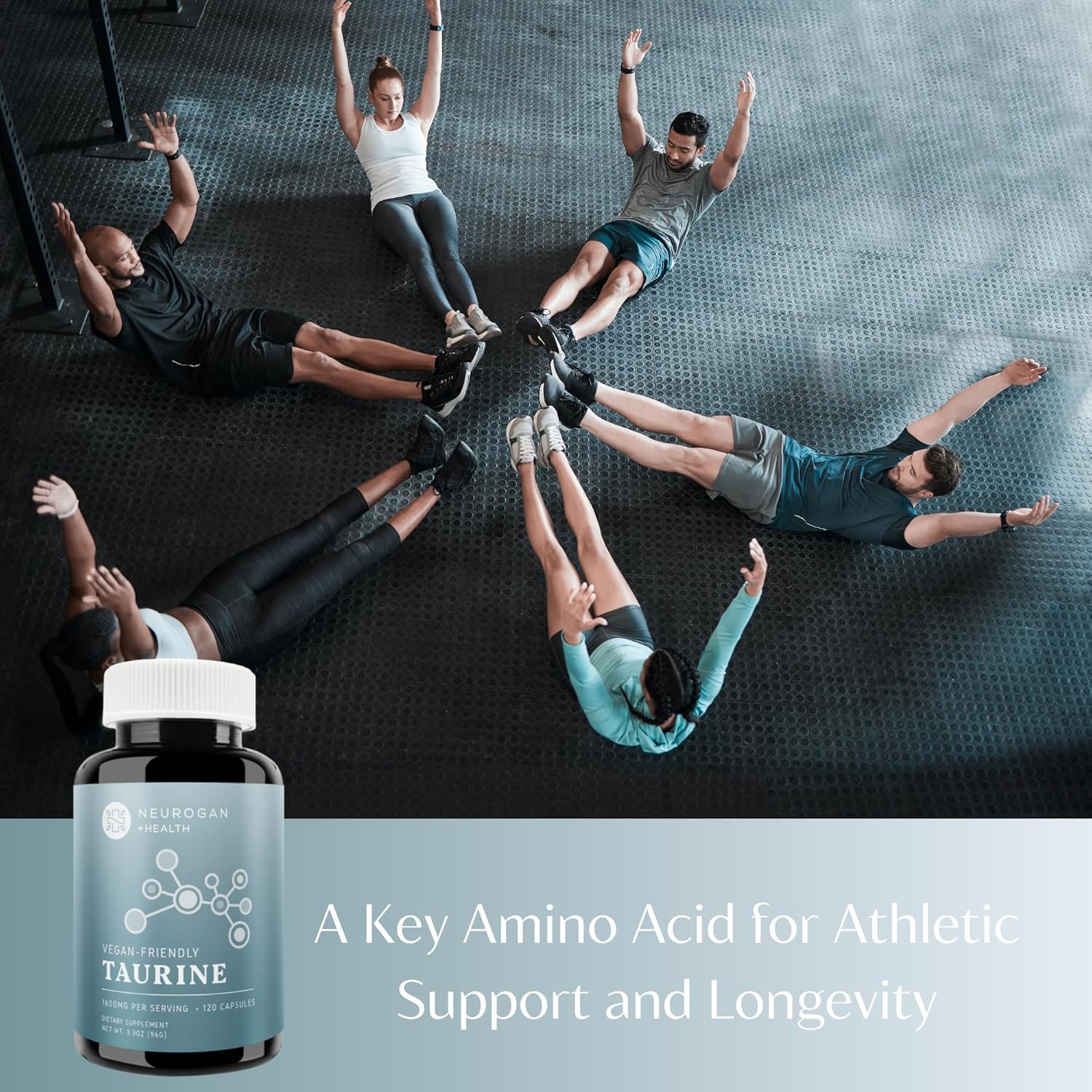 Neurogan Pure Taurine Capsules | Heart, Liver, and Brain Health | Supports Longevity, Muscle Function, and Exercise | 1600 MG Dose 120 Ct.