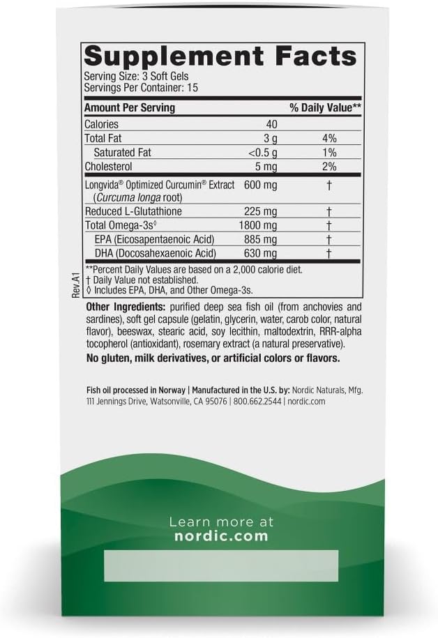Nordic Naturals Recovery Plus, Unflavored – 45 Soft Gels – 1800 mg Omega-3 Fish Oil – 600 mg Longvida Optimized Curcumin – Cellular Health & Recovery – Post-Exercise Muscle Support – 15 Servings