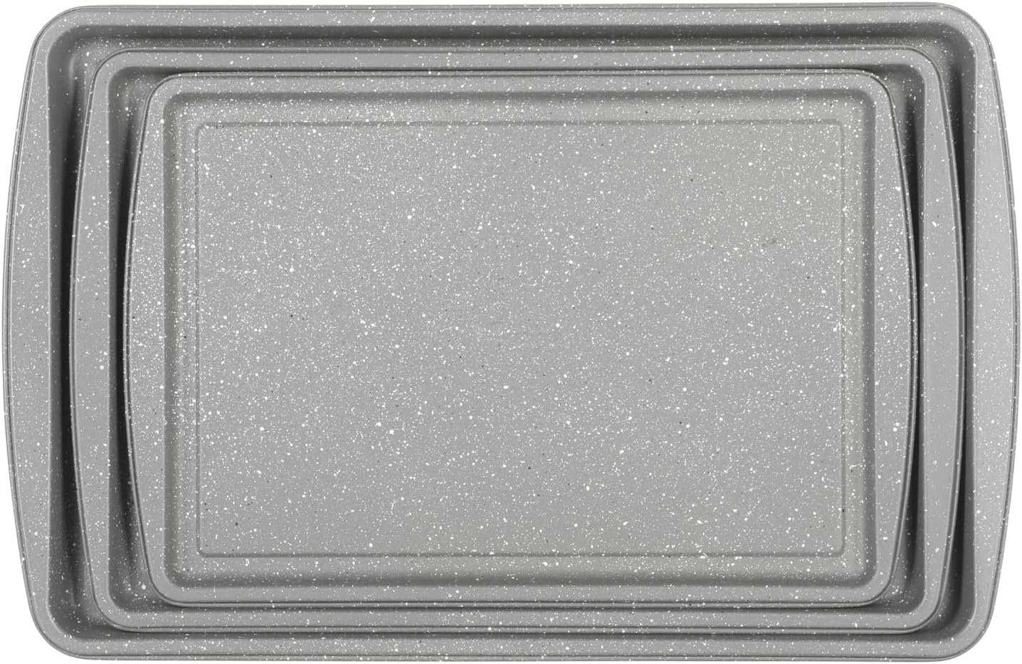 SPECKLED DESIGN: Grey speckled design peppers each pan and sheet throughout for an elegant, rustic presentation