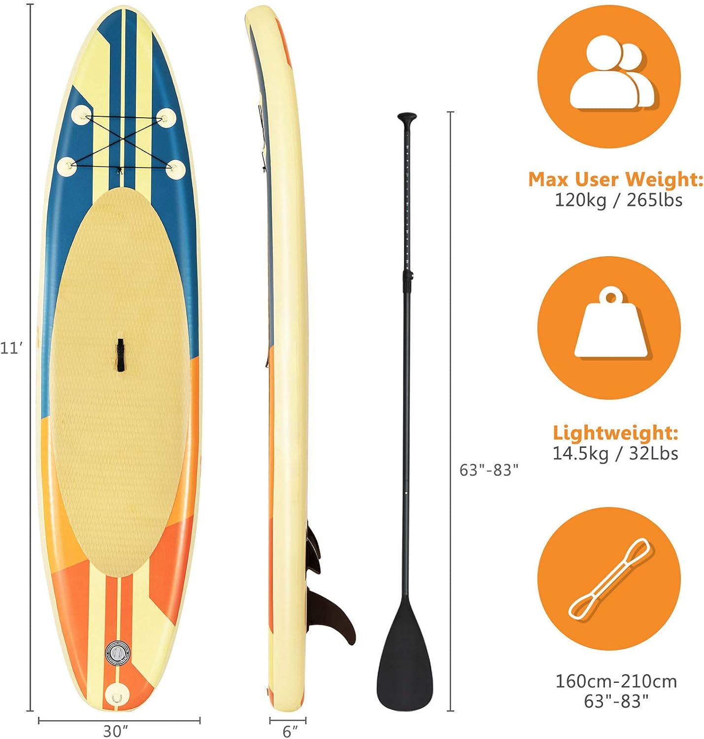【Wider Design】 Paddle Boards with dimensions of 10.5’/11’x32”x6” (LxWxH), it’s easy to stay balanced and stable on top of our SUP paddleboards. Equipped with the essential paddleboard accessories, our SUP paddleboard will have you ready for the waves.