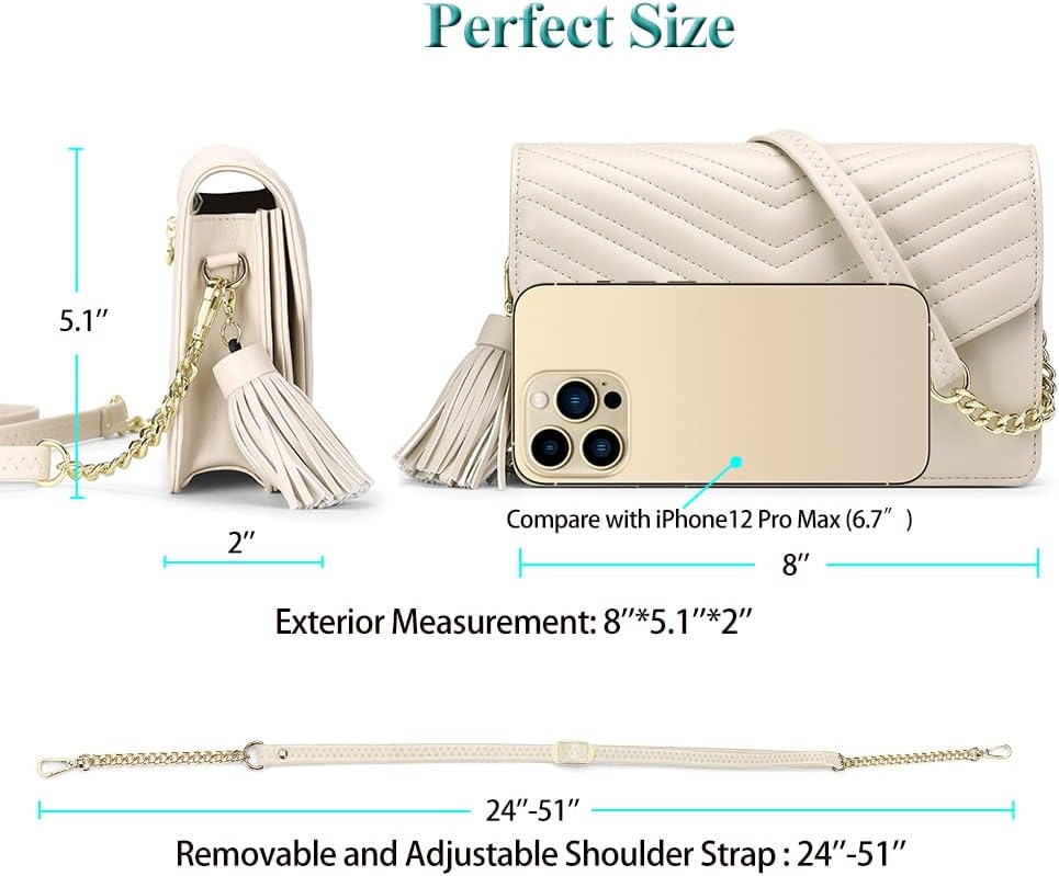 Peacocktion Small Quilted Crossbody Bags for Women, Shouler Handbags RFID Cell Phone Wallet Purse Clutch with Tassel